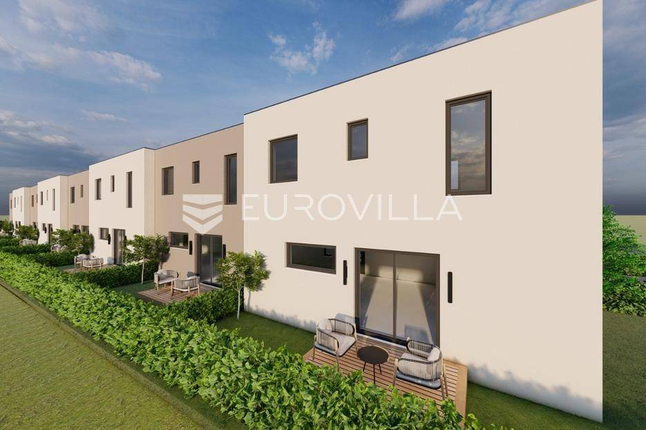 Na mirnoj lokaciji u Brezovici nalazi se novi projekt luksuznih kuća u nizu. U projektu je ukupno osam kuća, a svaka ima vlastiti vrt i pripadajuća parkirna mjesta, što pruža idealne uvjete za ugodan obiteljski život u zelenom okruženju.Kuća K1 ima stambenu površinu od 84,21 m², dok ukupna obračunska površina iznosi 116,24 m². Pripada joj vrt veličine 111,65 m² te ukupno četiri vanjska parkirna mjesta površine 61,13 m².Prizemlje ukupne površine 40,47 m² sastoji se od ulaznog prostora površine 3,42 m², sanitarnog čvora veličine 2,40 m², spremišta od 4,05 m² te velikog dnevnog boravka s kuhinjom i blagovaonicom veličine 30,60 m². Iz dnevnog dijela omogućen je izlaz na terasu i vrt.Na katu, ukupne površine 43,74 m², nalazi se stubište i hodnik veličine 11,27 m² iz kojeg se pristupa trima spavaćim sobama. Površine soba iznose 8,96 m², 11,56 m² i 7,63 m². Na katu se također nalazi kupaonica površine 4,32 m².Kuće se izvode zidanom konstrukcijom, s knauf pregradnim zidovima i termo fasadom od stiropora debljine 10 cm. Ugrađena je PVC stolarija s troslojnim staklom te roletama na struju. Grijanje je predviđeno putem dizalice topline s podnim grijanjem u cijeloj kući, dok je u dnevnom boravku ugrađen inverter klima uređaj. Kupaonice su opremljene keramikom prve klase, dok je u ostatku kuće predviđen parket. U fazi izgradnje ostavljena je mogućnost odabira podnih obloga u vrijednosti do 20 €/m².Planirani početak izgradnje je u ožujku 2026. godine, a završetak radova predviđen je u svibnju 2027. godine.Moguća je kupnja putem kredita.Lokacija je izvrsno povezana te u blizini nudi sve ključne sadržaje poput škole, vrtića, trgovine i javnog prijevoza.Za sve dodatne informacije stojimo na raspolaganju.