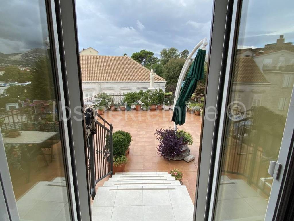 Market rarity !!! A luxury apartment for sale in the heart of the UNESCO city of Trogir. The entrance itself with its appearance that takes us back to the 13th century leads us to a beautifully decorated staircase to the second floor where the apartment of 106 m2 is located. A similar story continues in an apartment consisting of a kitchen fully equipped with solid wood, granite stone and appliances from America. It offers a stunning view of the medieval square. Furthermore, in the north-western part of the apartment there is a dining room that has access to the terrace (which is owned) of 55 m2 and a living room with access to the balcony. The rest of the apartment consists of two bedrooms, one of which has a walk-in closet, bathroom and laundry room with toilet. All rooms are equipped with air conditioning, in the living room there is a pellet stove that heats the whole apartment and the apartment is secured with a blind door and alarm system.