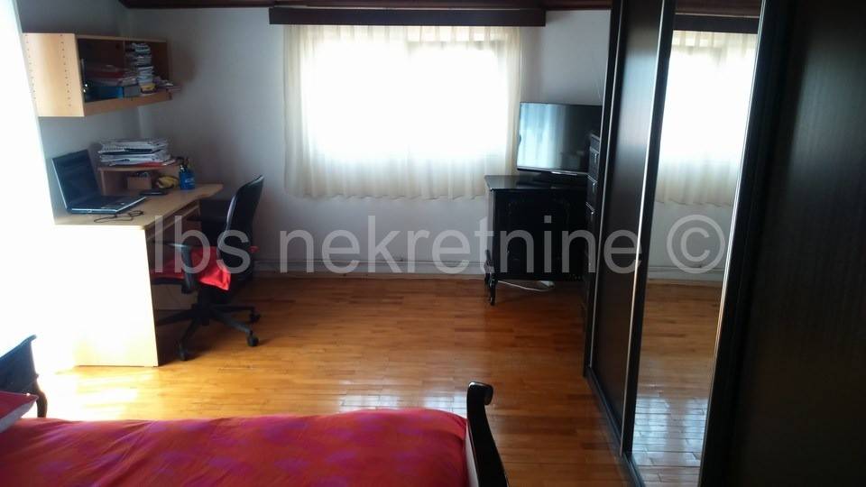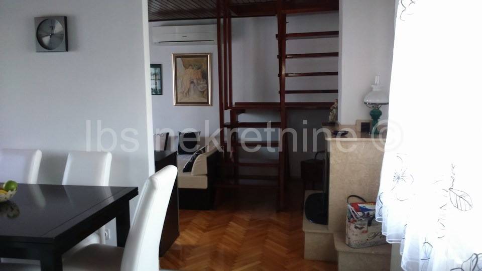Dvoetažan stan s dvorom. Sastoji se od kuhinje, blagavaone dnevnog boravka i kupatila koje se nalazi na prvoj etaži, te dvije sobe od kojih jedna ima izlaz na terasu na drugoj etaži. U naravi se radi o prvom katu i visokom potkrovlju koji su povezani unutarnjim skalama. Sami krov je promjenjen 2008 godine i u isključivom je vlasništvu stana.