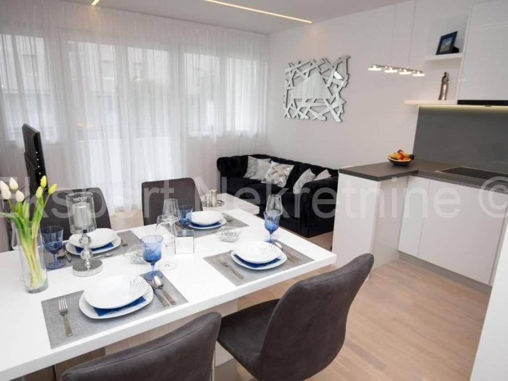 Objekt je u potpunosti klimatiziran te se prodaje sa svim opremljenim i namještenim visokokvalitetnim interijerom i eksterijerom (kućanskim aparatima, flat screen televizorima, led rasvjetom)Nekretnina je odličan izbor zbog mobilne pozicije i mediteranske klime, blizine mora, arhitekture objekta i brojnih plaža u blizini. Također, ima neposrednu blizinu škola, vrtića i trgovina.