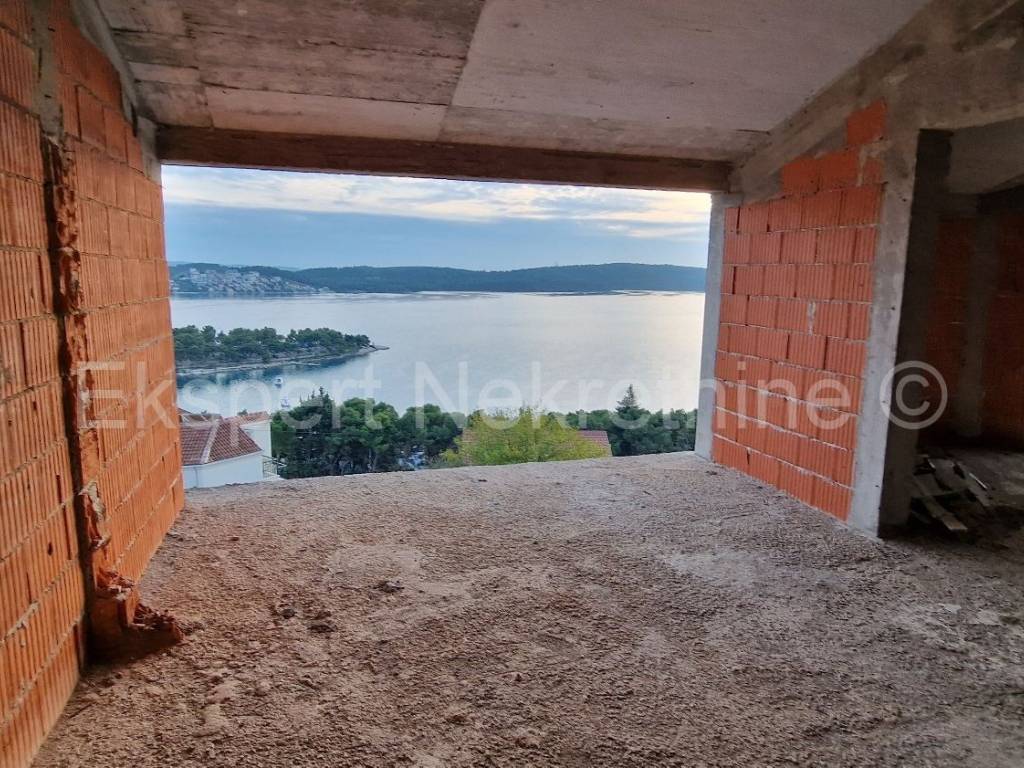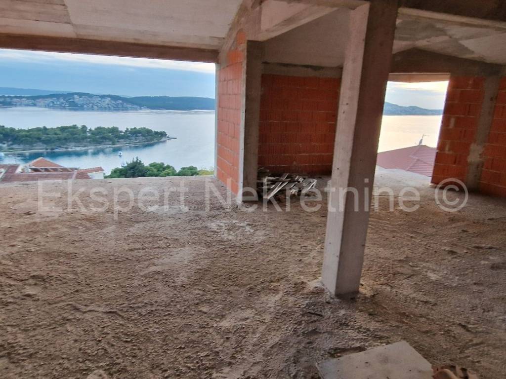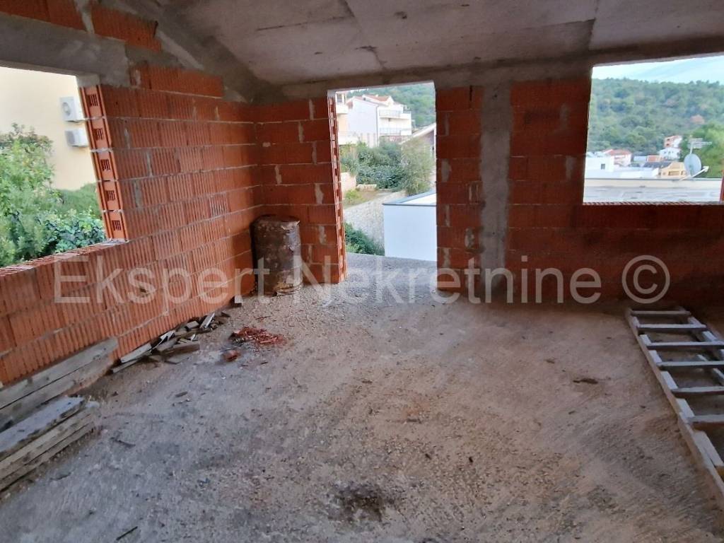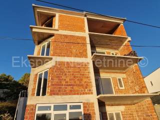 Čiovo, Okrug Gornji, a small detached house of 153 m2, with 2 apartments and a swimming pool, only 250 m from the sea and the beach, with a beautifully landscaped garden. On the ground floor there is a finished but unfurnished one-room apartment, with a beautifully landscaped garden, an outdoor pool, a summer kitchen with a barbecue and a large table on a covered terrace for socializing, beautifully landscaped terraced gardens planted with Mediterranean fruit trees and herbs. while on the first floor there is a decorated and furnished two-room apartment with a large terrace. The house is only 250 m from the sea and the beach. Ideal for tourist rental due to the proximity of the beach and the sea. Quiet location. Can be moved in immediately. Ownership in order.