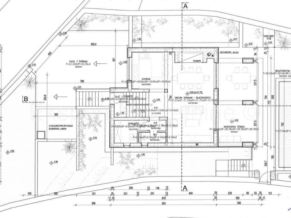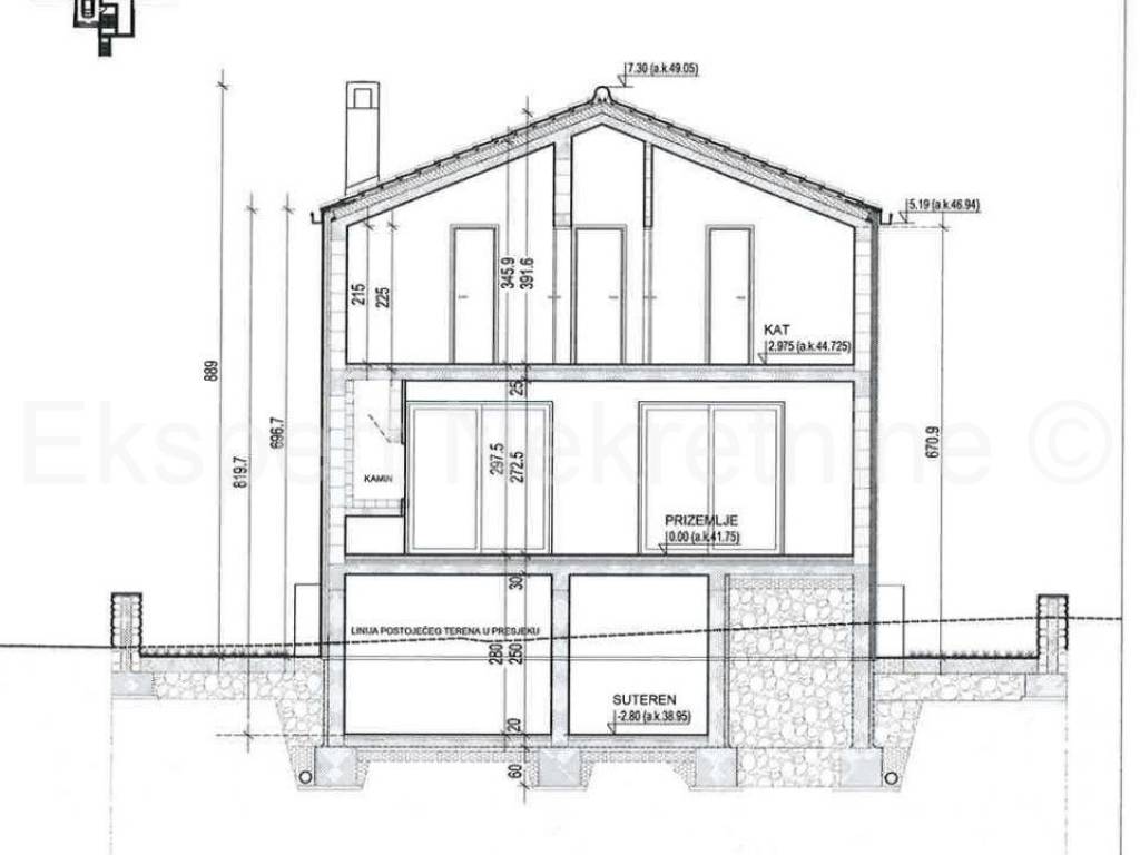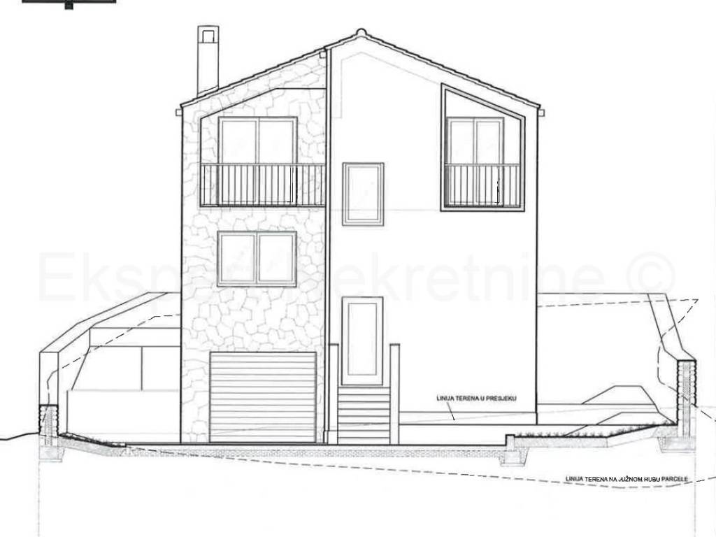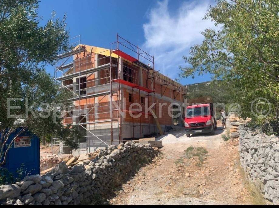 A house under construction with a total construction gross area of 216.79 m2 is for sale, located in Vinišće near Trogir, Croatia.