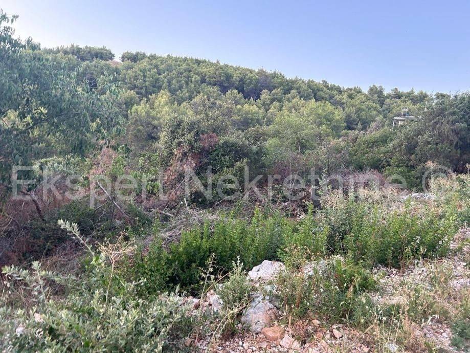Marina, Poljica, građevinsko zemljište 1200 m2 udaljeno 300 m od mora i plaže. Sa zemljišta se pruža pogled na more.