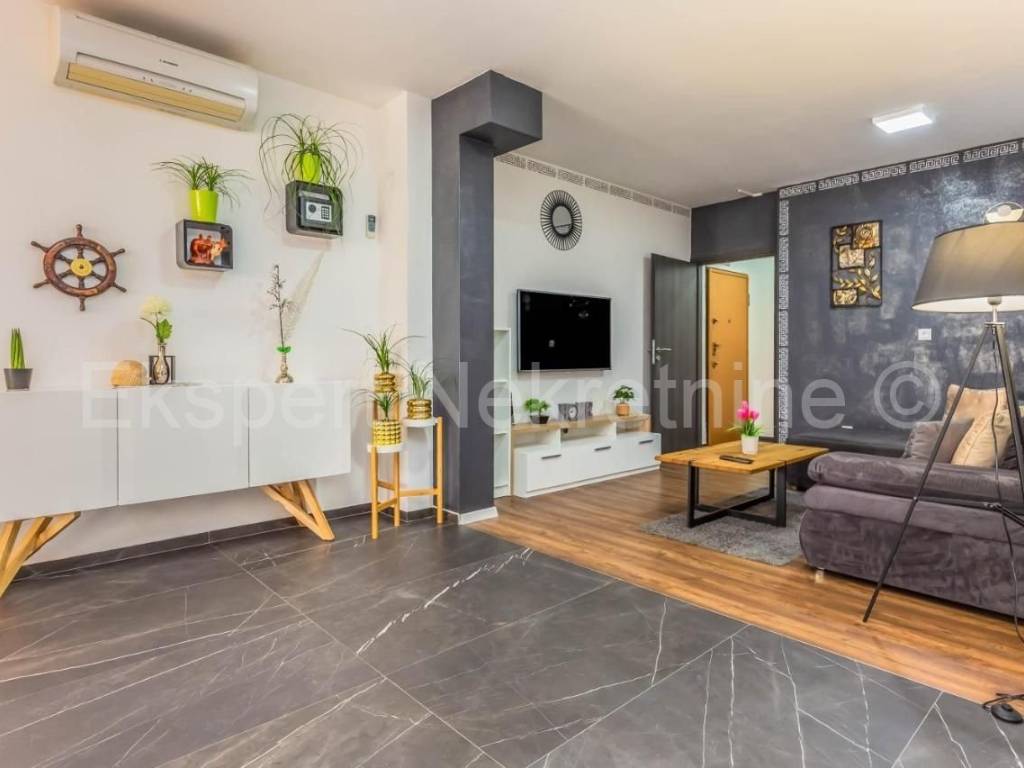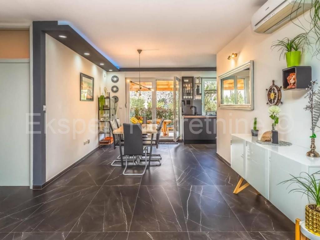 Stan ima dvije spavaće sobe,kupaonu,wc,veliki dnevni boravak s kuhinjom i blagovanom s izlazom na terasu.