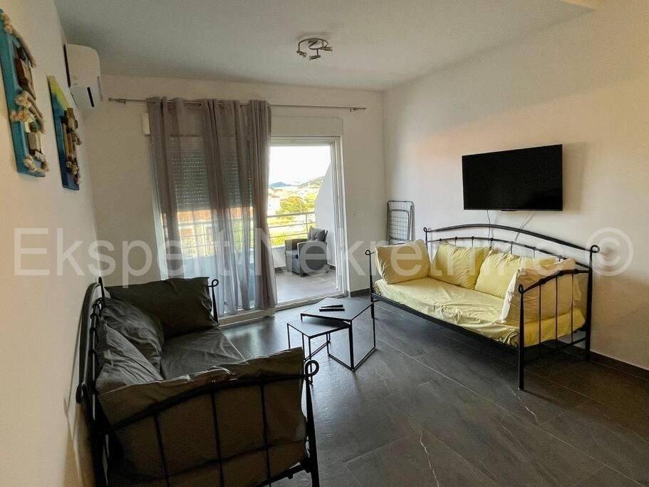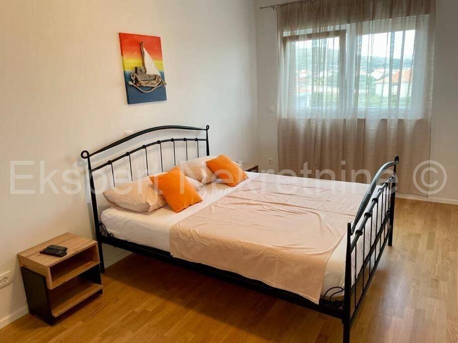 Seget Donji, 1-bedroom apartment 51 m2 in a new building with an elevator and a shared pool and a loggia. The apartment is located on the second floor and consists of one bedroom, one bathroom, a kitchen with a dining room and a living room. The apartment is east-oriented. belongs to one outdoor parking space. The building was built in 2023. Quality construction (PVC carpentry, air conditioning, underfloor heating, quality ceramics, etc.). The building is only 230 m from the sea and the beach. The price with furniture is 230,000 euros. For more information, contact the agency.