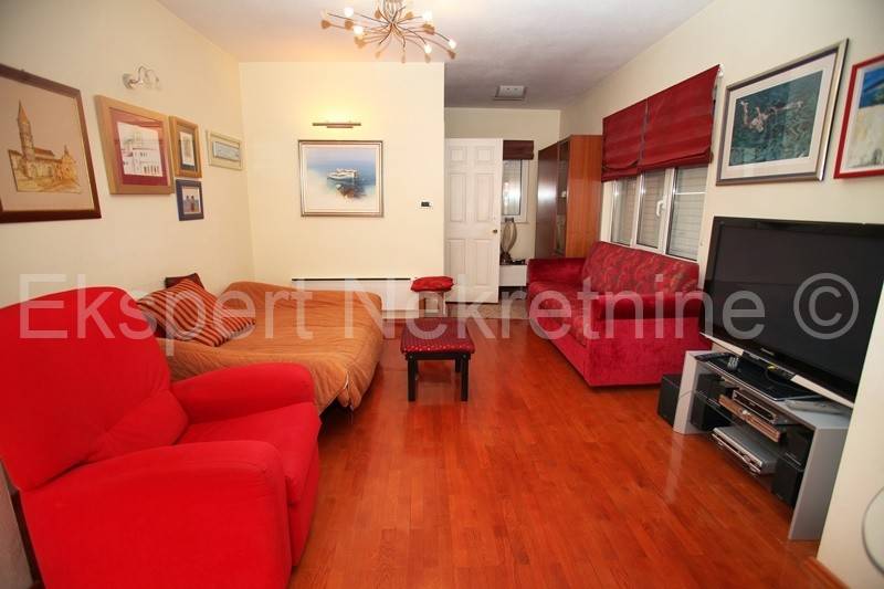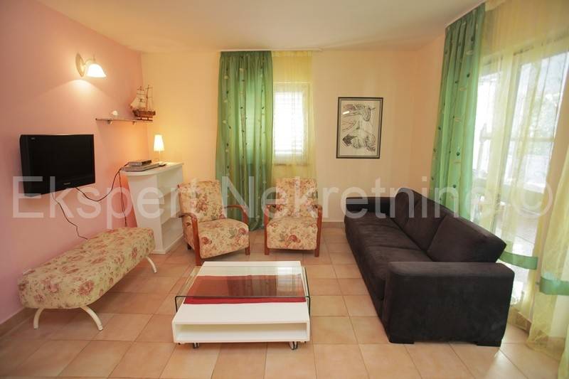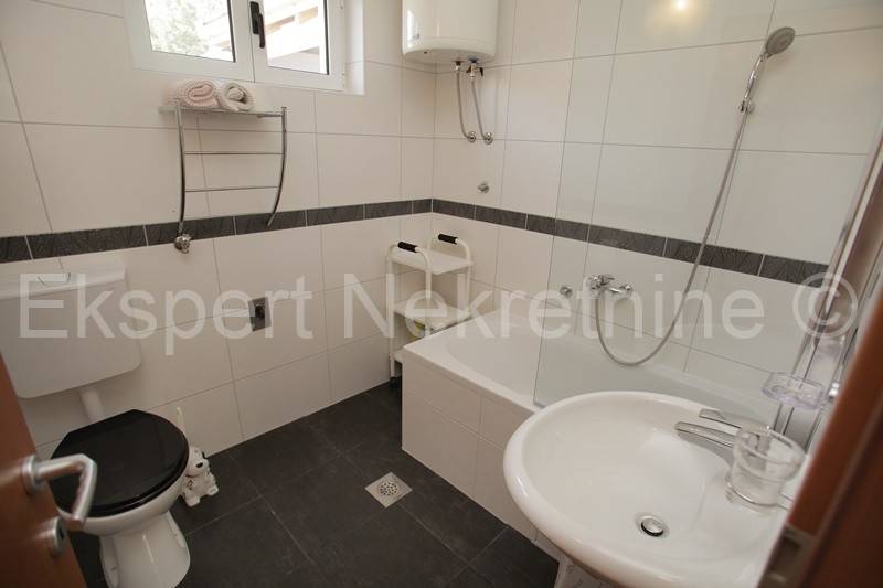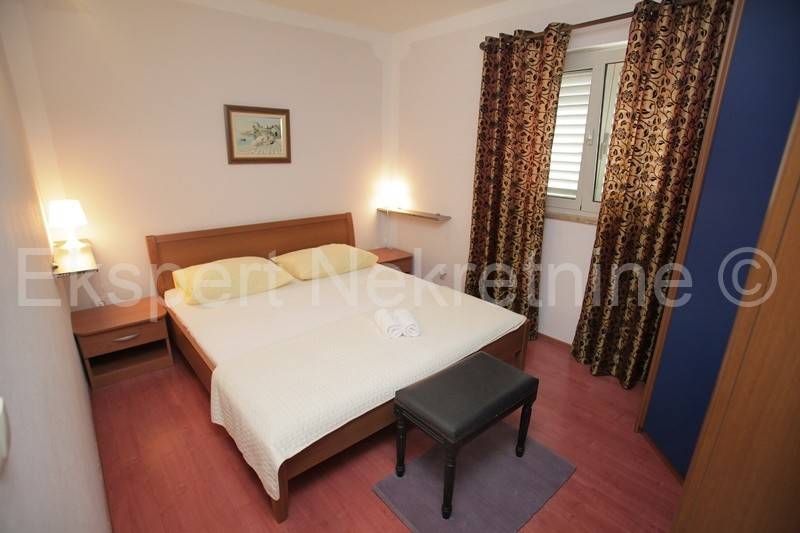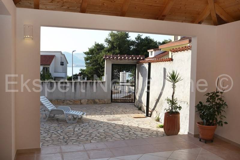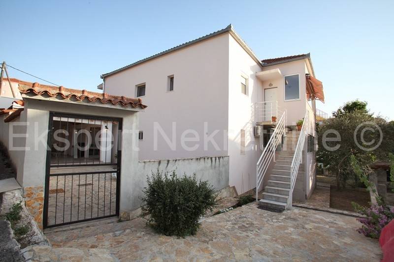 Čiovo, Okrug Gornji, detached house 280 m2, on two floors with a large garden of 800 m2. On the lower floor there is a comfortable three-bedroom apartment with a large covered terrace and summer kitchen, and on the upper floor there is a comfortable two-bedroom apartment with a large living room. and loggias. The house is in excellent condition and has plenty of parking spaces and space in the garden for the eventual installation of a swimming pool. It is about 50 meters from the sea and the beach. The legalization of the upgraded part of the house is in progress and the owner assumes all obligations regarding legalization. Ownership orderly.