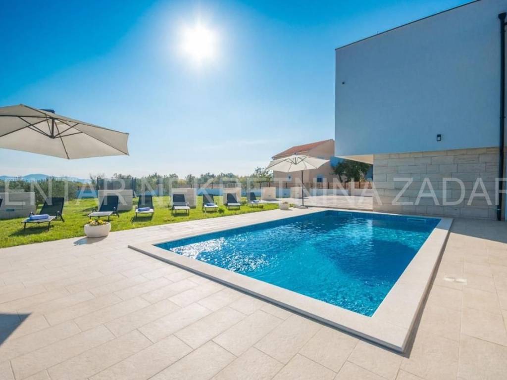 A new modern villa with a swimming pool is for sale, located in a quiet place in the hinterland between Zadar and Biograd.