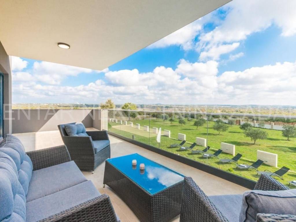 The living area of 380 m is distributed over the ground floor and first floor. On the ground floor there are a garage, a kitchen with a dining room, a spacious living room, one bedroom and a bathroom. The living room has access to a large terrace with a space for socializing. Upstairs there are three bedrooms, each with its own bathroom and terrace. In the yard there is a swimming pool (32 m) with a sunbathing area.
