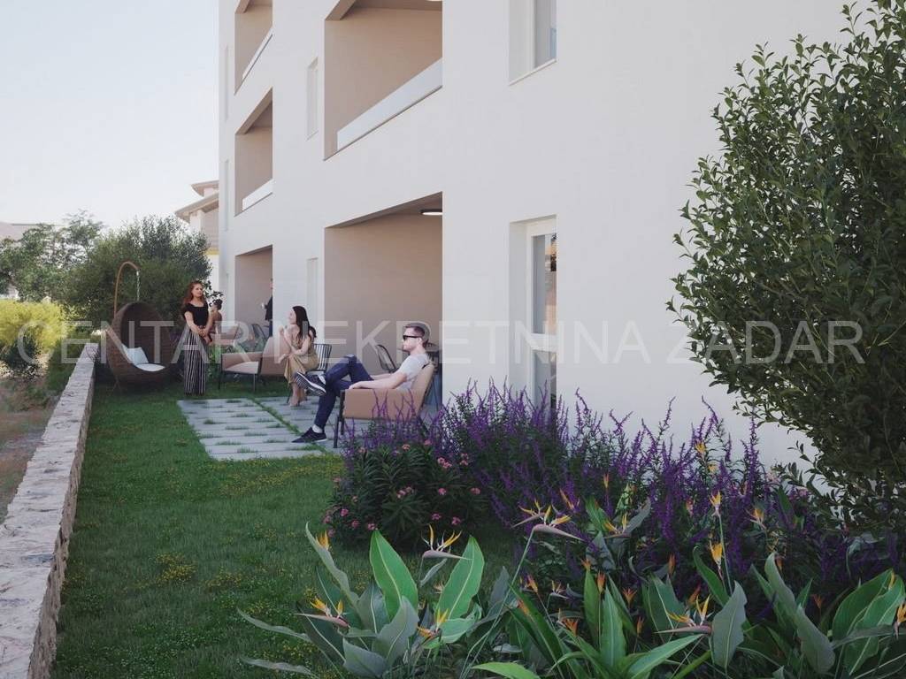 In a new building in Sukošan, an apartment on the ground floor with a garden is for sale, with a floor plan of 75.30 m.