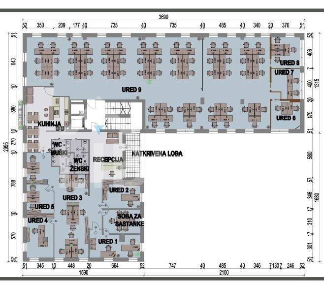 Uredski prostori nalaze se na drugom katu poslovne zgrade s liftom 637 m2 i pristupom za invalide.