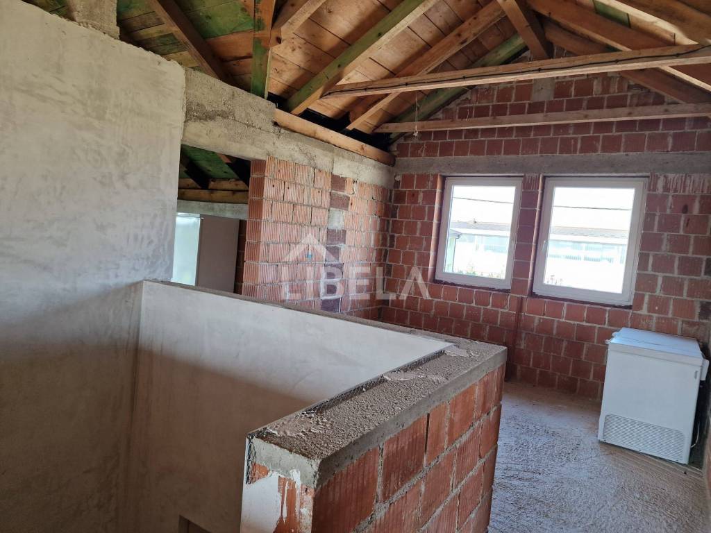 Kuća tlocrtne površine 142 m2 sastoji se od prizemlja i potkrovlja i građena je 2009. godine. Prizemlje je uređeno za stanovanje, sa dvije spavaće sobe, kupaonicom, velikim dnevnim prostorom koji uključuje i blagovaonicu i kuhinju i dvije terase. Gornji kat je u roch bau izvedbi, s provedenom vodom i strujom. Kuća nema fasadu, što je dosta lako primijetiti iz fotografija.