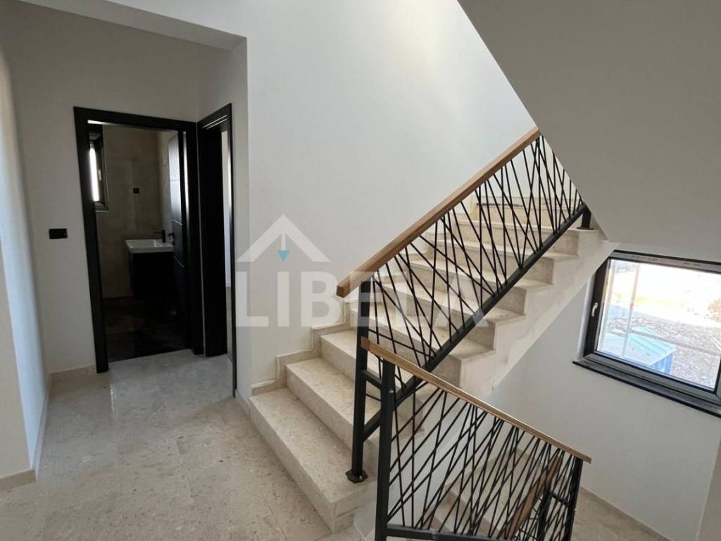 Unutarnje stubište vodi na gornju etažu, gdje se nalaze tri udobne spavaće sobe, svaka sa svojom privatnom kupaonicom. Dvije sobe imaju izlaz na zajedničku lođu. Površina kata iznosi 85,80 m.