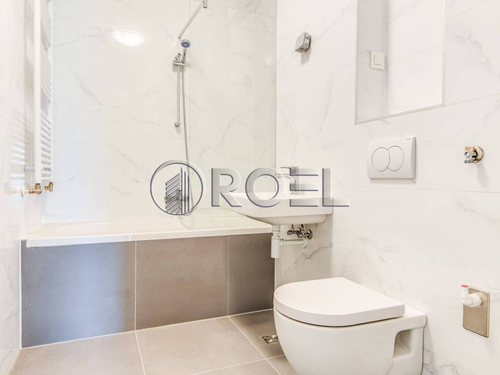 Two-room apartment on the third floor of a new building with an elevator, gross floor area 56.43 m2. It consists of a hallway, a toilet, a kitchen, a living room and a dining room with an exit to the loggia measuring 3.76 m2 (2.82 m2), a bedroom and a bathroom with a toilet. The apartment also has a storage room in the basement of the building. It is oriented to the east and west. The floors in the apartment are covered with parquet and ceramics. The apartment is equipped with PVC windows with three-layer insulating glass (white inside and anthracite outside) and air conditioning. Heating in the apartment is gas central heating. Energy certificate A+. The living area of the residence is 51.73 m2.