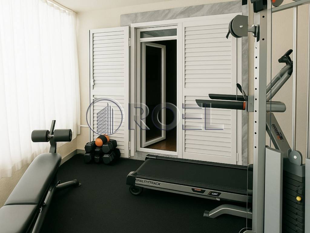 Stan se sastoji od hodnika, dnevnog boravka povezanog s blagovaonicom i kuhinjom, dvije spavaće sobe, kupaonice te dvije terase. Posebnu vrijednost daje terasa uređena kao kućna teretana, koja pruža jedinstvenu kombinaciju privatnosti, rekreacije i uživanja uz more. Stanu pripada i spremište u podrumu zgrade.