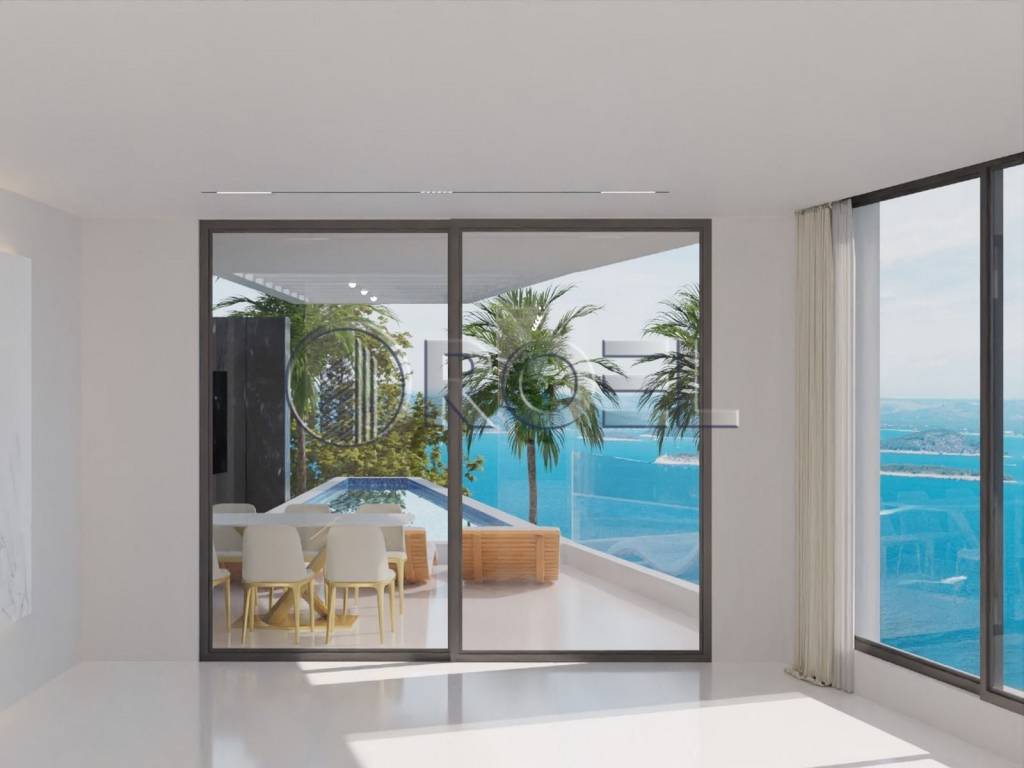 In a prestigious location in Ičići, just a few minutes from the sea and the exclusive beaches of the Opatija Riviera, this modern luxury villa with three separate living spaces is situated.