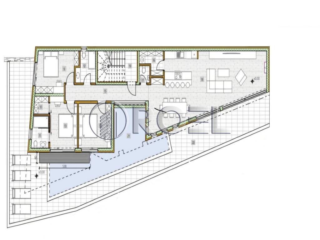The ground floor apartment has direct access to a spacious terrace with a private pool and sun deck, making it perfect for enjoying the Mediterranean climate and spectacular views. It consists of 3 bedrooms, two bathrooms, a wardrobe, hallway, storage room, separate toilet, and a spacious living area with a kitchen and dining room.