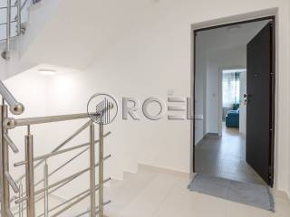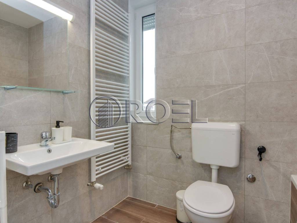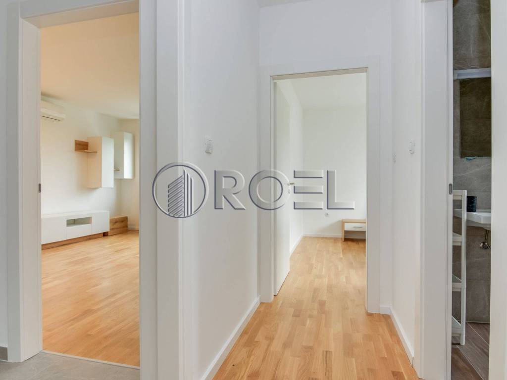 The three-room apartment is located on the first floor of a new building near Velika Gorica. It has a perfect layout. It consists of an entrance (4.29 m2), toilet (1.47 m2), hallway (2.63 m2), two bedrooms (10.16 m2) and (10.10 m2), the smaller of which has access to the balcony (4.84 m2), bathroom with toilet (4.11 m2), living room with dining room (18.83 m2). ), kitchen (4.64 m2) and pantry (1.52 m2). The living area of the apartment is 57.96 m2. The floor in the apartment is covered with parquet and ceramics. It is fully equipped and is being sold as is. Heating in the apartment is gas central. It is equipped with PVC carpentry and air conditioning. The kitchen in the apartment is Meblo Trade.