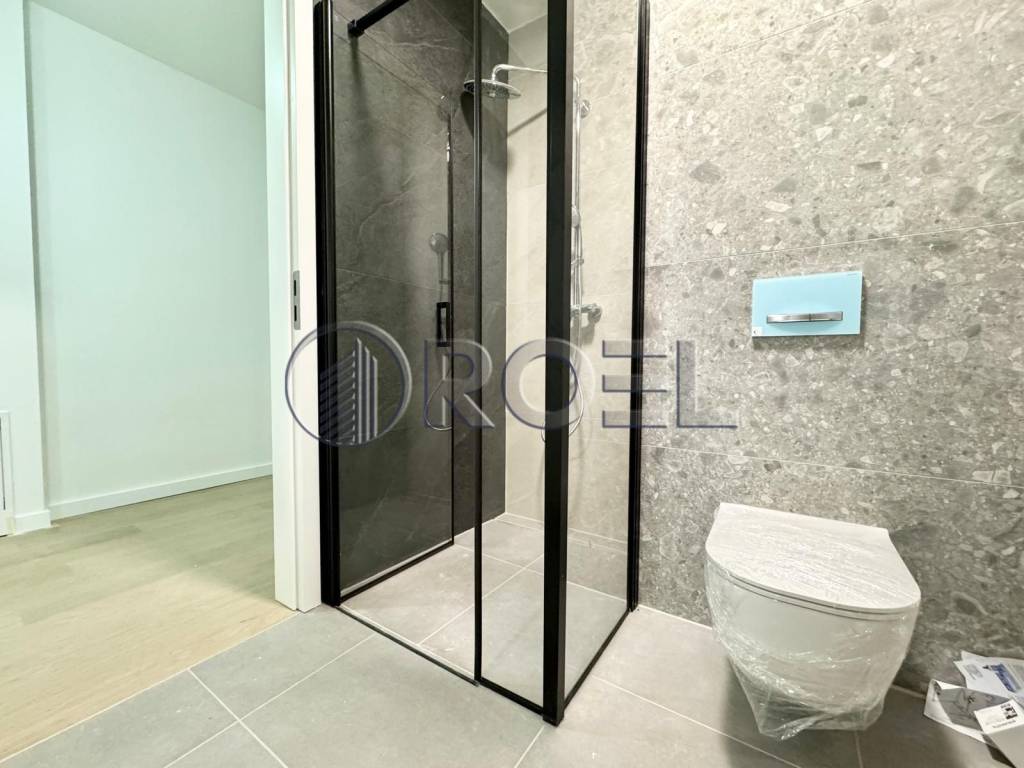 Kupaonica ima već ugrađeni umivaonik i ogledalo te ostale sanitarije renomiranih proizvođača, a dizalice topline smještene su u ugradbenim ormarima u hodniku s ogledalom koji tkđ. dolaze uz stan.