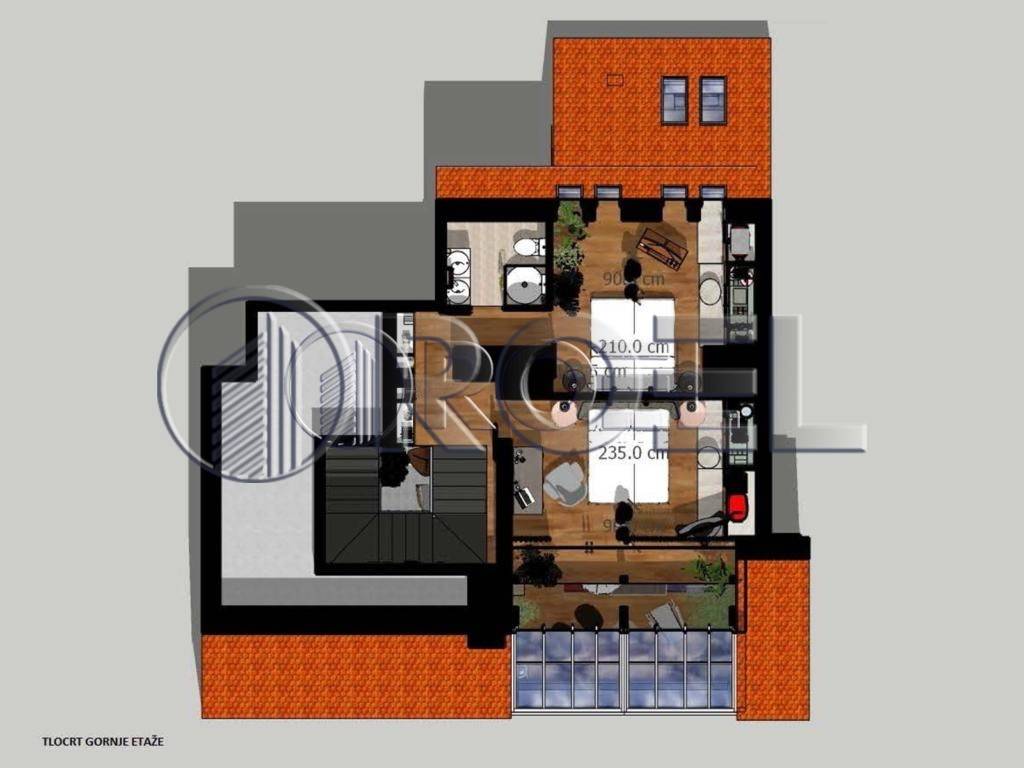 Moderan dvoetažan stan u potkrovlju u Centru Zagreba, NKP 165 m. Savršeno raspoređen. Na prvoj etaži je ulazni hodnik, kupaonica s wc-om, namijenjena za goste, spremište, spavaća soba s ugradbenim ormarom, dnevni boravak iz kojeg se ulazi u kuhinju s blagovaonom unutar koje je i smočnica. Stepenište vodi do druge etaže, odnosno galerije koju čini hodnik s bibliotekom, kupaonica s wc-om, prostrana spavaća soba s ugradbenim ormarima koja gleda na uličnu stranu te druga spavaća soba na dvorišnoj strani koja ima pomičnu staklenu stijenu. Orijentacija je sjever, jug. Stan odiše luksuzom i posebnošću. Orijentiran je na sjever, zapad i jug. Cijena stana u trenutnom stanju : 3.500 /m Cijena u dovršenom stanju: 4.500 /m LOKACIJA: Ova lokacija i sam stan po sebi budućem vlasniku pružaju život najviše kvalitete i jedinstven doživljaj života u Zagrebu. Nalazi se u samoj gradskoj jezgri, nekoliko minuta hoda od Ilice i Trga bana Josipa Jelačića. U blizini HNK, poznatih restorana i kafića, crkve, tržnice, trgovine, muzeja, muzičke akademije, fakulteta te ostalih sadržaja bitnih za život. Nalazi se u tramvaj zoni.