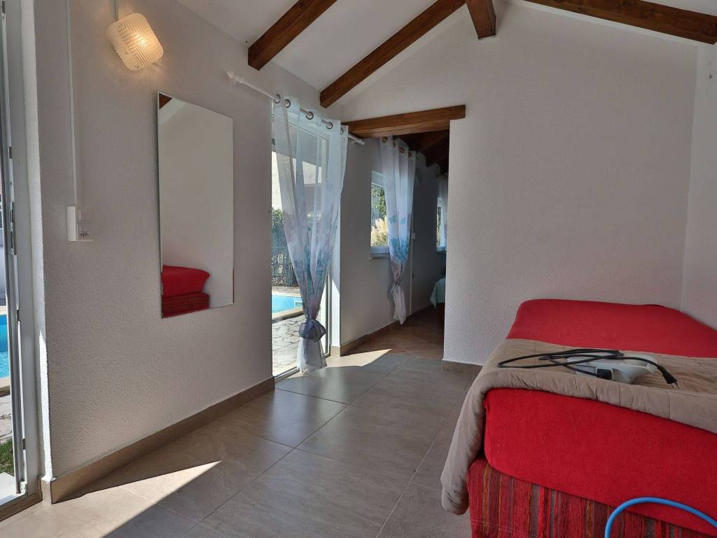In the vicinity of Poreč, a 170 m2 single-family house with a 25 m2 apartment is for sale, ideal for family life or tourist rental.The main house consists of:- 3 comfortable bedrooms.- 2 bathrooms.- Spacious living room- Fully equipped kitchen with pantry.- Terraces with sea view- Summer kitchens on the terrace, perfect for enjoying warm evenings.On the gallery there are 2 additional bedrooms, 1 bathroom.In the garden there is a 45 m2 swimming pool, ideal for relaxing and socializing.A studio apartment separate from the main house offers additional space for guests.Heating is provided by air conditioning and a pellet stove, which ensures a comfortable temperature throughout the year.A perfect property for living or investment, with lots of amenities..