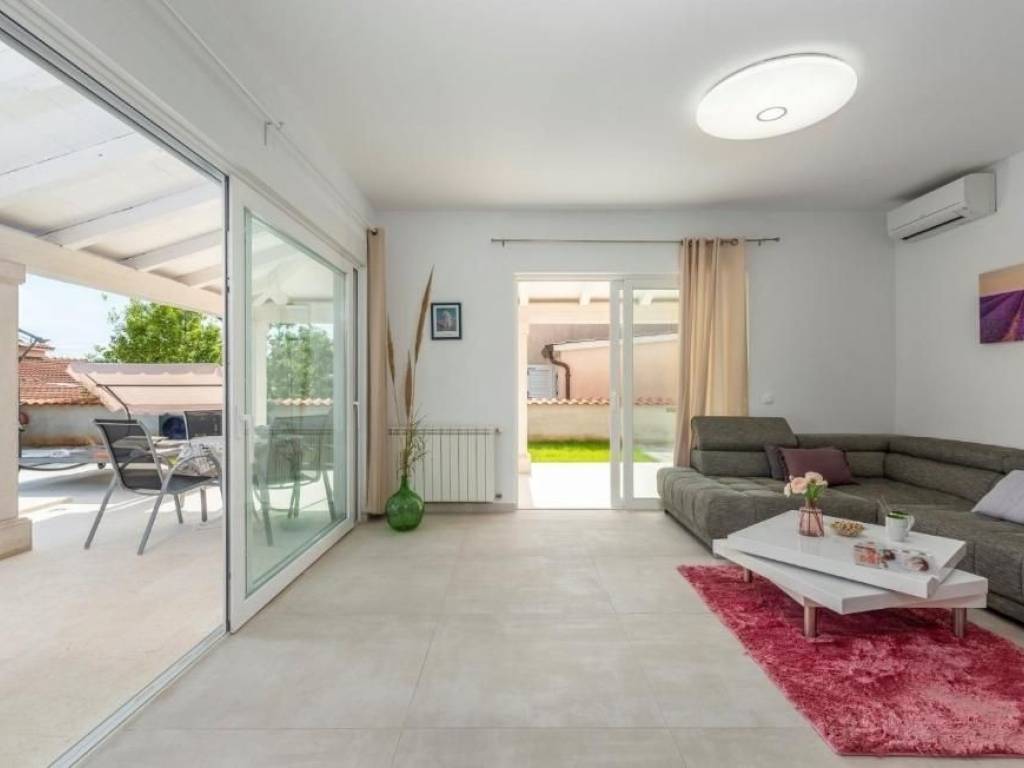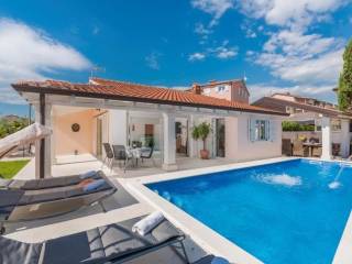 The detached house with a living area of 136 m consists of three bedrooms, three bathrooms and a storage room, a dining room with a kitchen, a living room with access to a covered terrace where there is a charming summer kitchen for relaxation. In the courtyard there is also a sunbathing area and a 29 m2 heated saltwater pool with several hydromassage jets and a waterfall.The property is equipped with high-quality appliances, equipment and ceramics.Heating/Cooling is via air conditioning units located in all rooms and the living room. The house also has oil-fired central heating - underfloor heating.The garden has automatic irrigation and video surveillance.All necessary facilities are located near the house: school, kindergarten, shop, cafes and restaurants.This house is an ideal solution for housing or as an investment for the purpose of tourist rental.