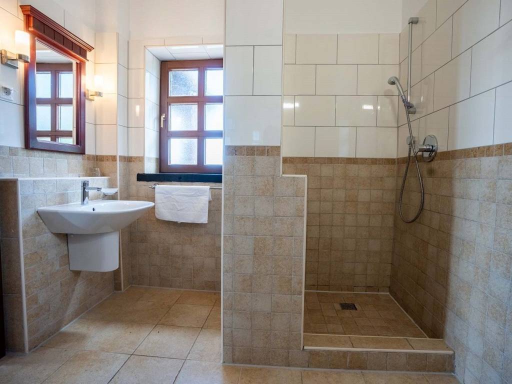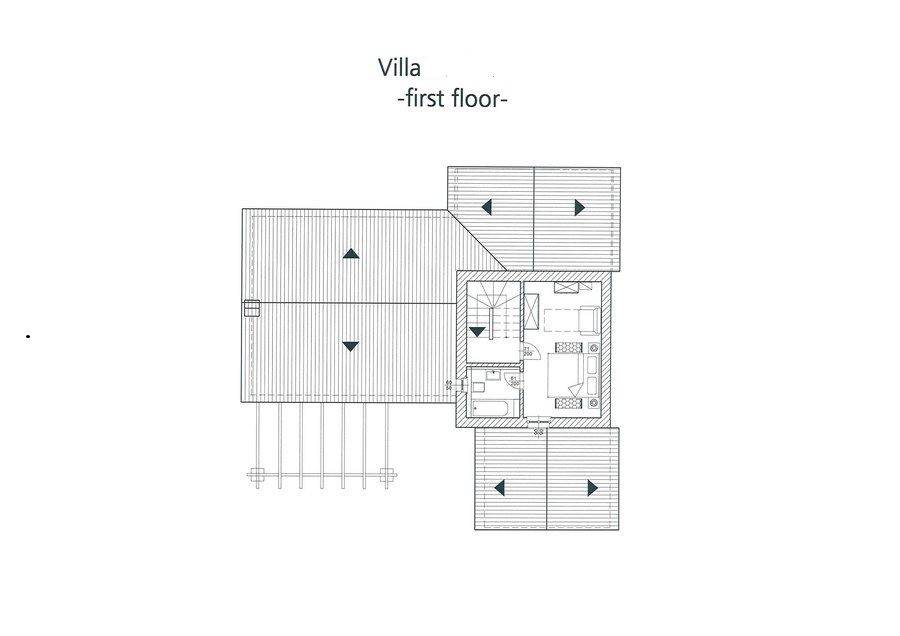 Upstairs there is another bedroom with its own bathroom and a private terrace, which offers peace and a view of the greenery.
