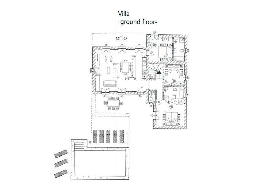 The house is equipped with underfloor central heating, radiators and air conditioning, which allows for a comfortable stay during all seasons.