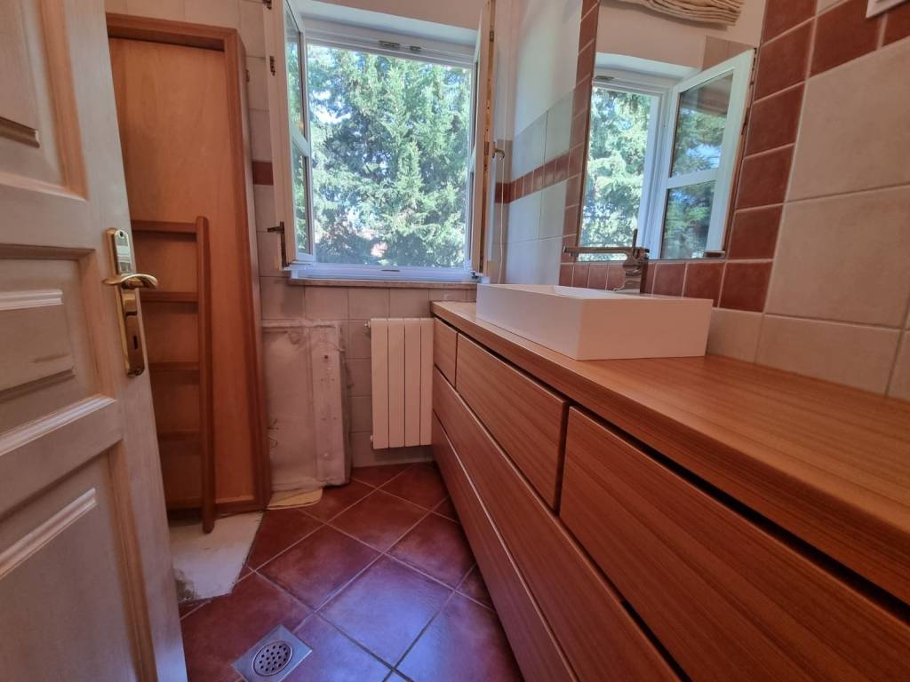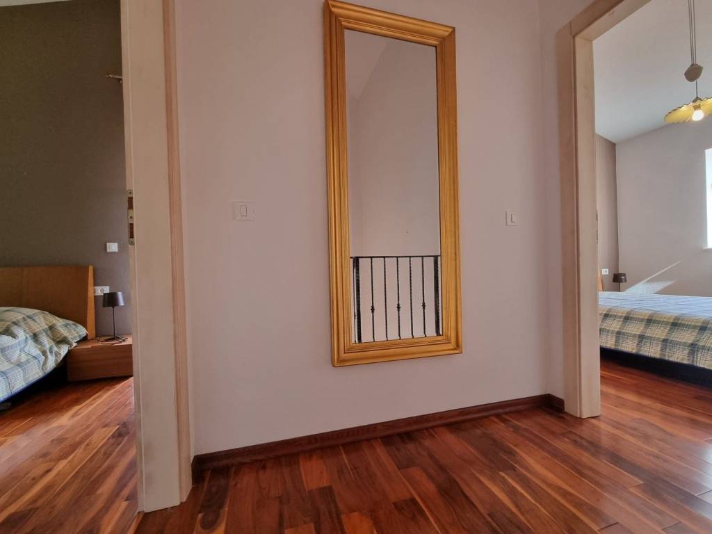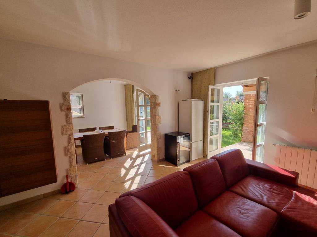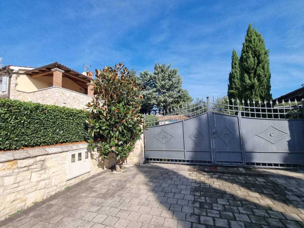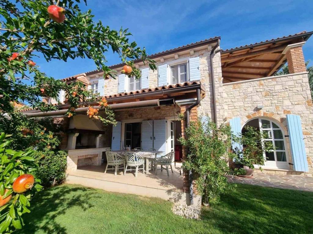 Prekrasna dvojna kuća nalazi se na mirnoj lokaciji nedaleko od Poreča i svega 1 km od mora. Sagrađena je 2006. godine, a vlasnici su je renovirali 2021. godine, te ju kontinuirano održavaju. Kupili su je i koristili isključivo za svoje potrebe, kuća nije nikada iznajmljivana! Ukupno ima 155,55 m2 sa terasama (135 m2 zatvorenog prostora), na parceli od 367 m2. Vrta ima 200 m2. Kuća se sastoji od prizemlja i kata, mediteransko-rustikalnog je stila. U prizemlju se nalaze hodnik, spavaća soba, kupaona, veliki dnevni boravak sa kaminom i kuhinja sa blagovanom. Iz dnevnog boravka i kuhinje izlazi se na natrkivenu terasu gdje se nalazi još jedan kamin i stol za ručavanje, te u vrt. Na katu se nalaze još dvije spavaće sobe svaka sa svojim kupatilom, koje dijele prostranu natkrivenu terasu. Terasa je vanjskim stubištem povezana sa vrtom. Vrt je prekrasno uređen sa mediteranskim biljkama, starom maslinom, uređenim travnjakom, te bazenom od 30 m2. Uz bazen je napravljena mala kamena vrtna kućica od 7 m2 gdje je predviđeno sve za saunu ili može služiti kao spremište. Uz bazen i kućicu se nalazi vanjski tuš. Kuća ima 2 parkirna mjesta. Cijeli vrt je zatvoren zidom, zelenilom ili metalnom ogradom. U stražnjem dijelu kuće, blizu bazena, nalazi se spremište/kotlovnica i ljetna kuhinja. Kuća se prodaje sa namještajem koji je izrađen za cijelu kuću po mjeri. Grijanje je regulirano centralno na lož ulje. Pokretna klima je instalirana samo u jednoj spavaćoj sobi. Instaliran je i alarm te video kamere. Kuća može biti odmah useljiva!