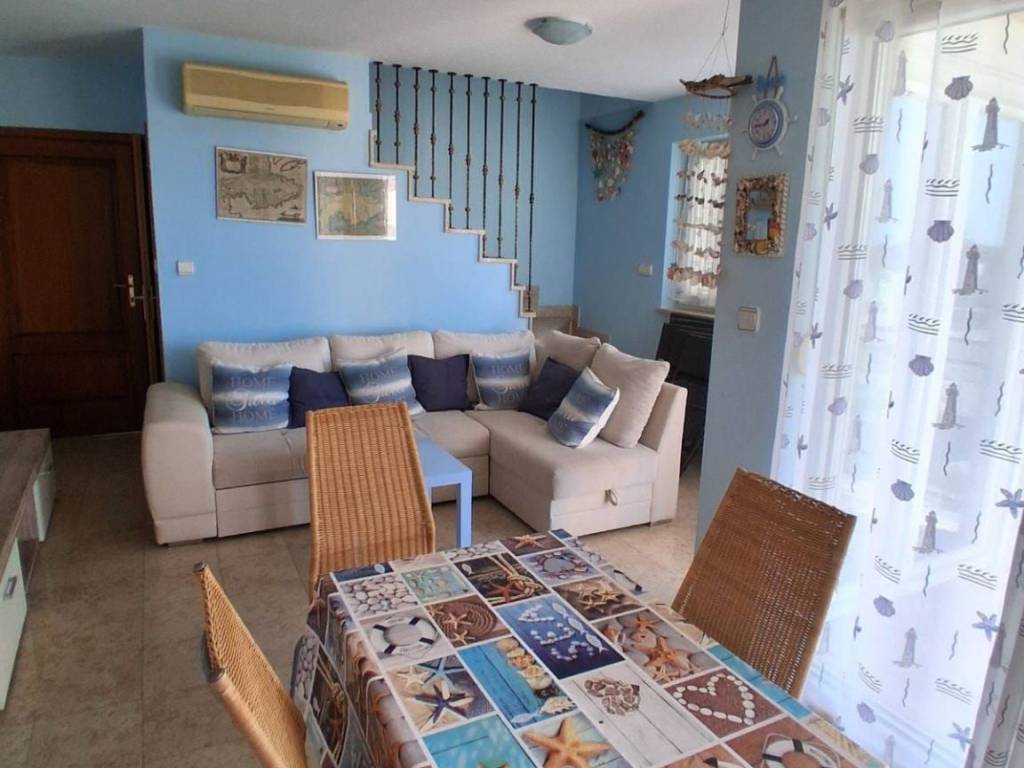 For sale is a two-storey apartment in the vicinity of Poreč of 53 m2 + 6 m2 of storage. The lower part of the apartment consists of a kitchen with dining area and living room, terrace and toilet. The upper part of the apartment consists of a room with access to a terrace with a beautiful sea view and a bathroom. The apartment is heated and cooled by air conditioning. The apartment has been completely renovated except for the bathroom. The apartment has one parking space.
