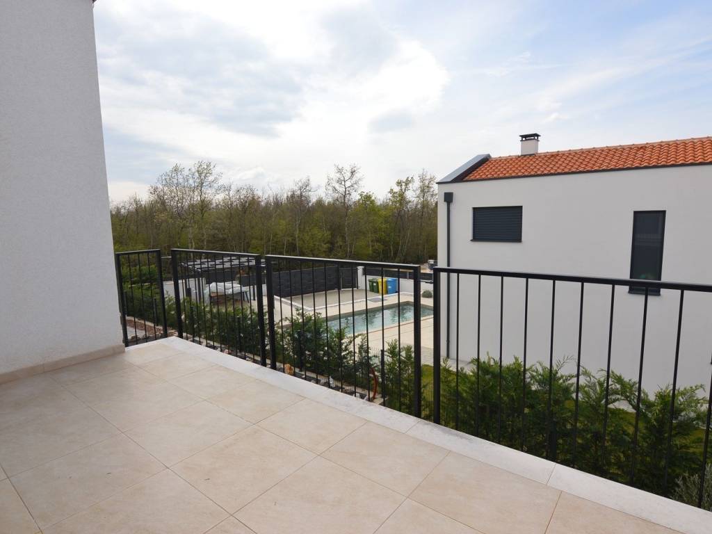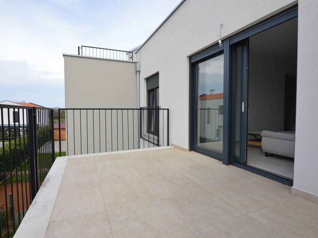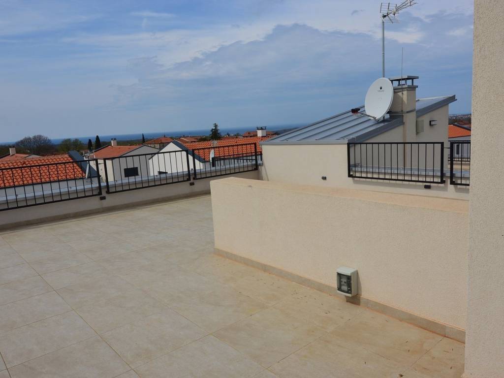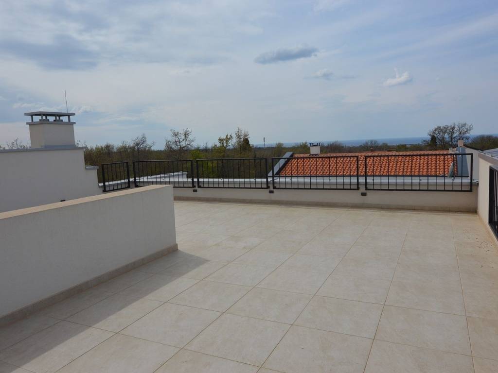 In the vicinity of Poreč, an apartment is for sale on the 1st floor of a building with a roof terrace in a building of only 5 apartments. The apartment consists of: an entrance hall, a living room with a kitchen and a dining room, two bedrooms, a bathroom, a toilet and a balcony of 13.20 m2. External stairs lead to a roof terrace of 75 m2 with a beautiful sea view.Heating and cooling with air conditioning in all rooms.