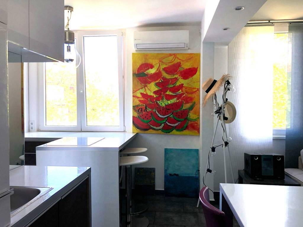 U Červar-Portu na drugom katu zgrade na svega 30 m od mora, prodaje se prekrasno dizajniran stan površine 47 m2. Stan se sastoji od ulaznog prostora, spavaće sobe, dnevnog boravka, blagovaone, kuhinje , kupatila i terase.Stan je moderno opremljen.