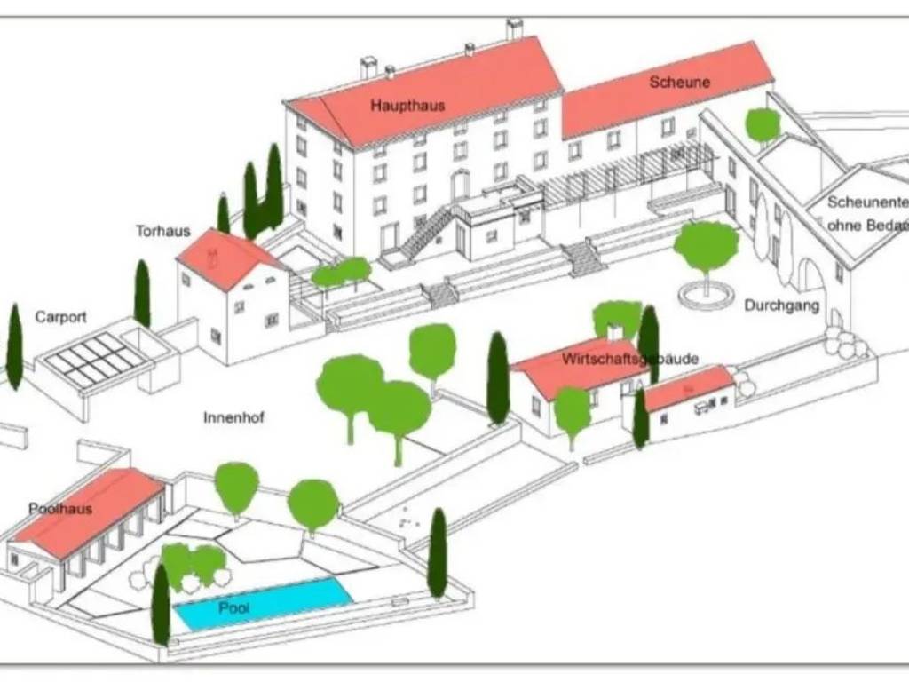 This unique property, a former Venetian castle, is located in the vicinity of Grožnjan. The property extends over spacious gardens where fragrant fields of lavender, rosemary, jasmine, oleander and cypress bushes decorate the property. Walnut and medlar trees frame the idyllic courtyard, while spacious terraces are lined with Mediterranean herbs such as basil and oregano. The perfectly maintained swimming pool invites you to spend refreshing hours, while the adjacent pool house with a fully equipped kitchen offers additional luxury.The spacious main house includes seven exquisite bedrooms, five of which have en suite bathrooms. Of particular note is the "master bedroom" in the "Piano Nobile", which has a private lounge and an elegant en suite bathroom. The other bedrooms are spread over two floors and also offer the utmost comfort, including two rooms with double beds that can be separated, each sharing a bathroom in the hallway.On the ground floor, a modern, well-equipped kitchen with dining area and a light-filled living room invite you to relax, while the blue room with a fireplace offers a cozy atmosphere. The workspace in the attic provides peace and inspiration.The neighboring house has a cozy living room with a fireplace, a fully equipped kitchenette and a terrace overlooking the herb garden. On the upper floor, there is a double bedroom with its own bathroom that offers peace and privacy.The old ruins on the property offer a fascinating history and serve as cool refuges on hot summer days. The renovated stables are also ideal for romantic evenings under the starry sky.The property is located just 30 minutes from the beach and the town with amenities. The rural setting offers peace and inspiration that is unmatched. Experience the combination of tradition and modern luxury in one of the most exclusive properties in the region.The heating and cooling of the villas is regulated by a gas heat pump, combined with wall heating/cooling, ensuring comfortable temperatures all year round. In addition, there are solar panels that always contribute to the hot water supply in the summer.