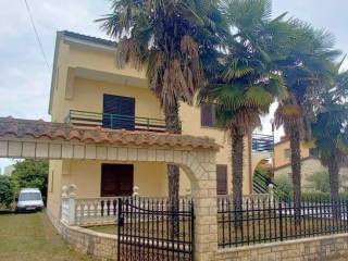 Poreč - suburb 1.5 km from the sea, and 2 km from the city of Poreča detached house is located in an exceptional location and on a beautiful plot of 820m2The house has 3 residential units, There is a detached house of 310.17 gross m2 and net 245 m2 in an exceptional location and beautiful land of 820m2.an additional building of 40 m2 and a garage.The house has been carefully maintained and is in excellent condition. The windows were replaced in 2020, as well as the security entrance doors on each floor. The paving around the house has been decorated with modern, top-quality porcelain tiles that give a modern touch to the garden.One bathroom in one of the apartments on the ground floor has been renovated, where underfloor heating has also been installed.The house consists of a basement, two one-bedroom apartments on the ground floor and one two-bedroom apartment on the first floor. There is a boiler room in the basement.Heating is provided by central heating with heating oil.The plot of 820 m2 contains an additional building of about 40 m2. There is a garage attached to it.The building has aluminum joinery and aluminum shutters, while the house has aluminum shutters. The rest of the yard is lawn.