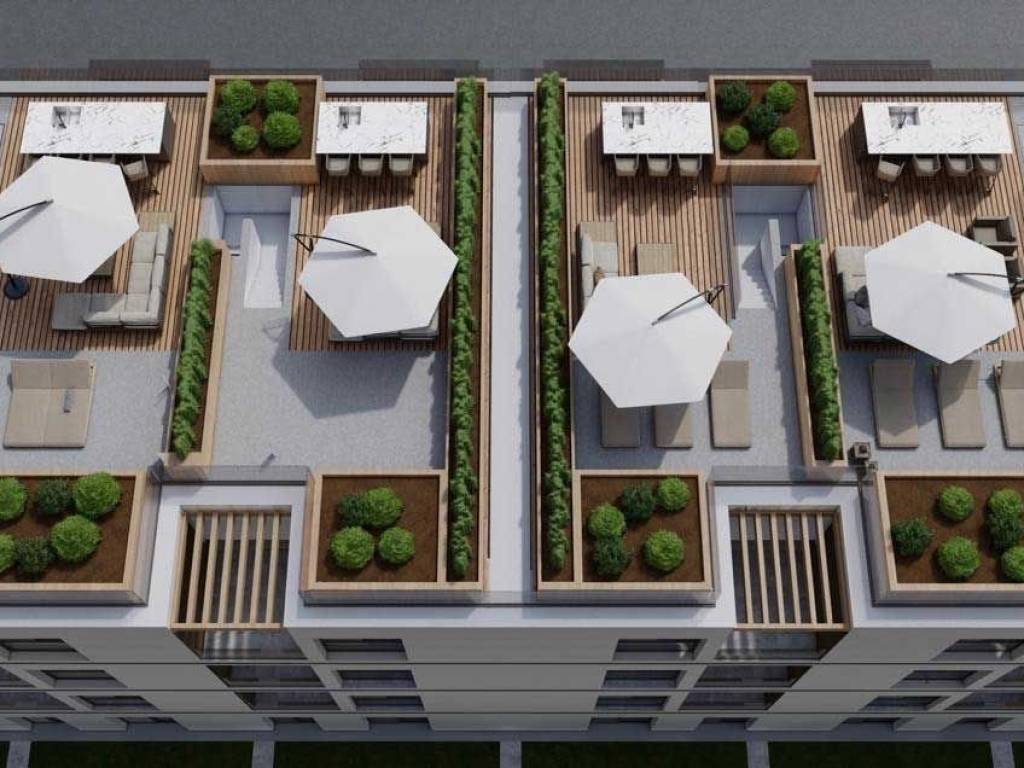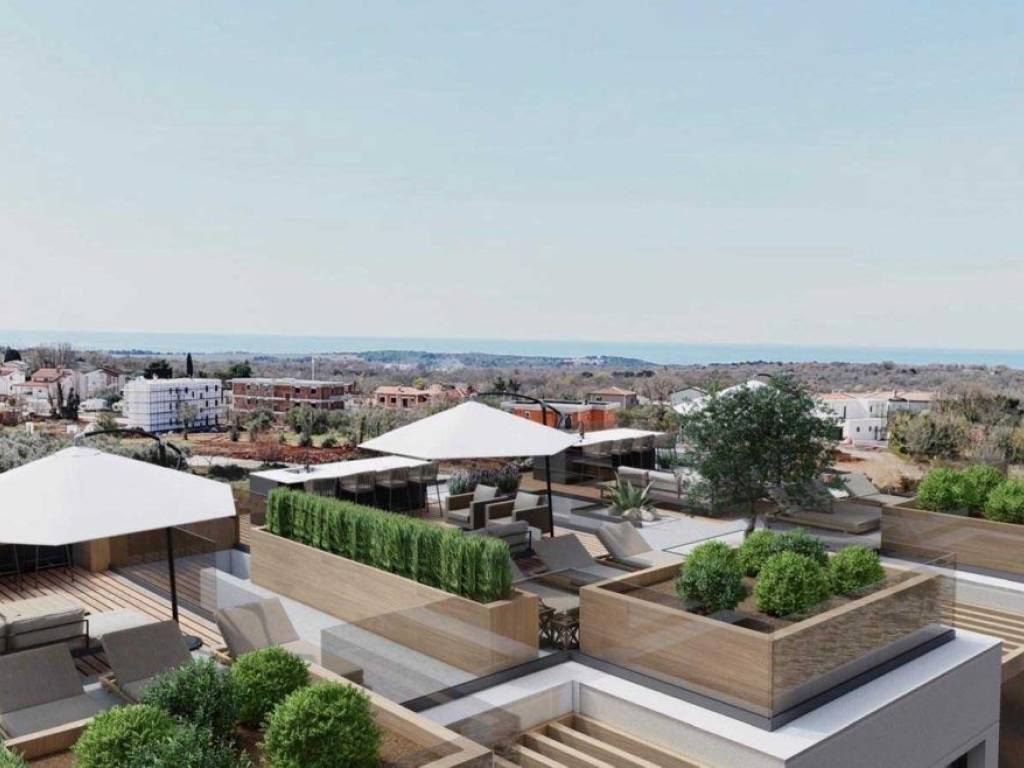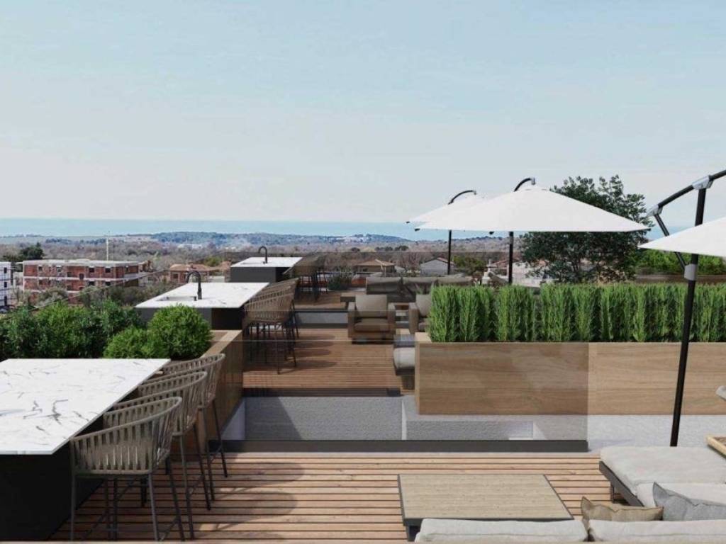 Apartment D11 is located on the third floor of the building and consists of an entrance hall with an open kitchen, dining room and living room with access to the terrace, a bedroom with access to the balcony, another bedroom, bathroom, and access to a private roof terrace with preparation for a jacuzzi, sauna and summer kitchen. Electric underfloor heating throughout the apartment, air conditioning, quality Italian ceramics, Villeroy and Boch sanitary ware. On the ground floor of the building there is a shared bicycle storage room and two parking spaces.Construction begins in December 2024, and completion in 2026