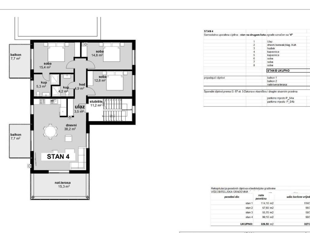 I am selling a penthouse under construction on the 2nd floor in the center of Tara.The apartment consists of an entrance hall, kitchen with dining room and living room, three bedrooms, two bathrooms and a spacious terrace.The apartment has 2 parking spaces.The apartment is heated by electric underfloor heating, and it is heated and cooled by air conditioning.The buyer does not pay real estate sales tax.