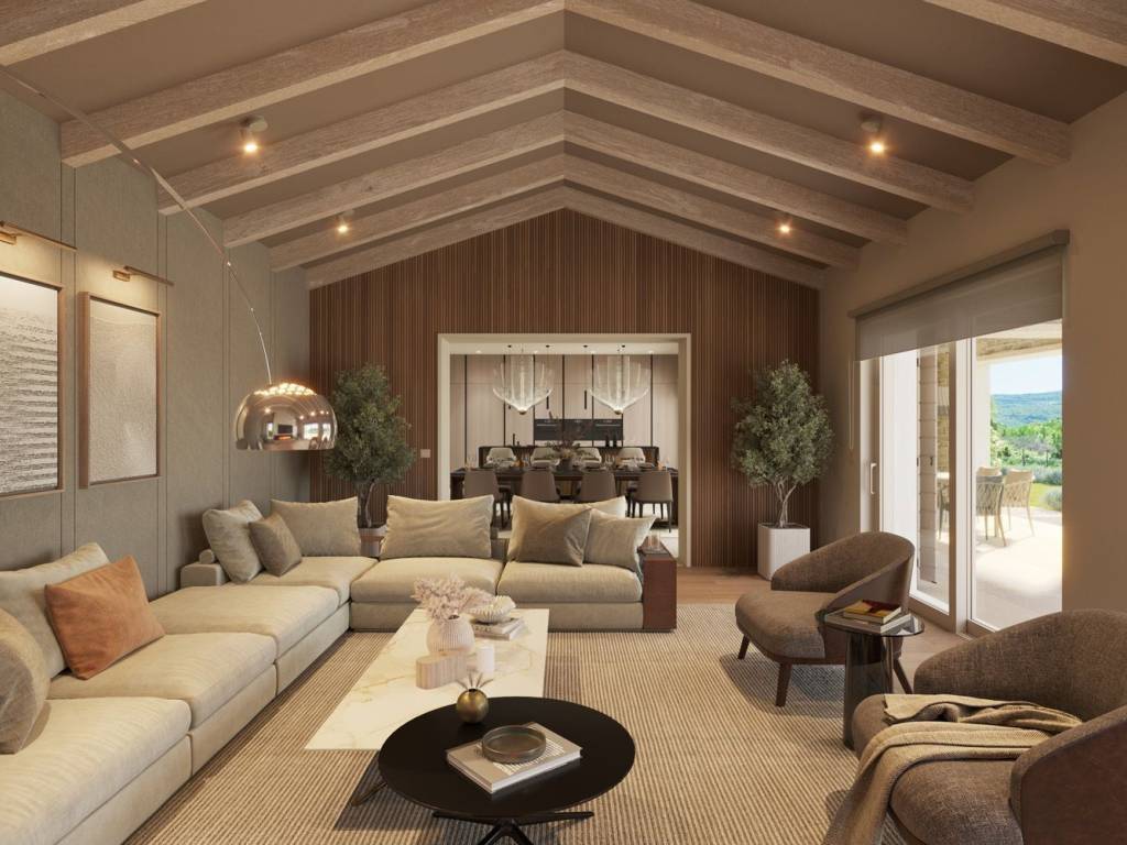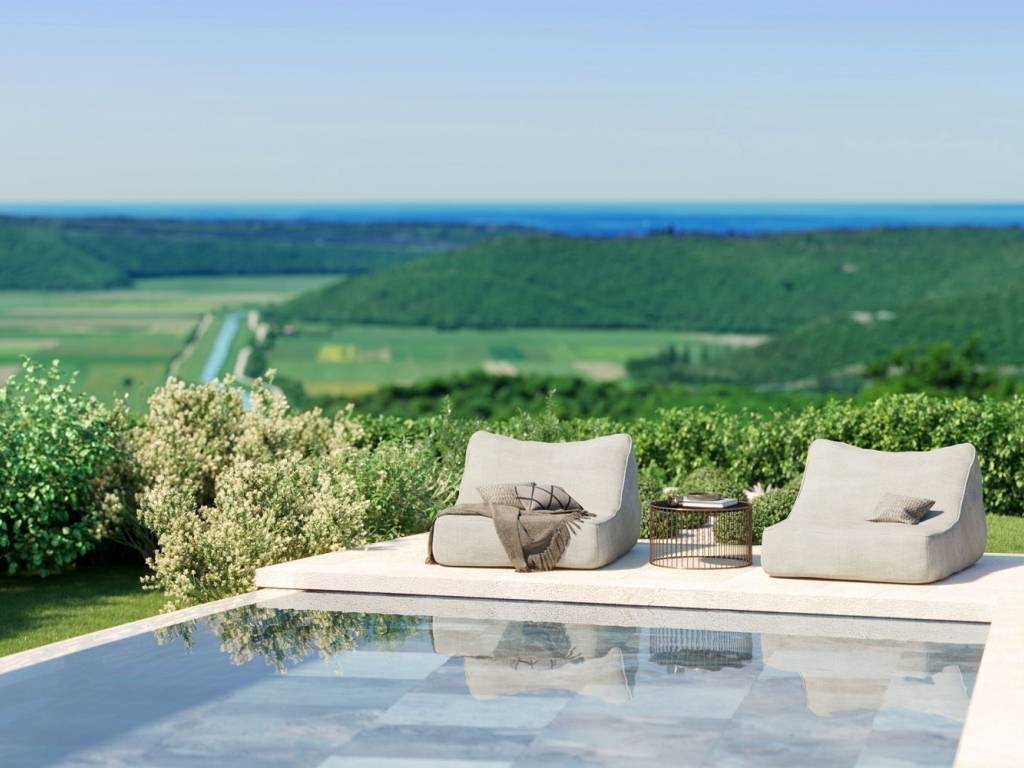 A luxurious detached villa with a swimming pool in the vicinity of Grožnjan is for sale.The villa has an area of approx. 400 m2 on a plot of 1736 m2.In the basement of the villa there is a gym, a wine cellar, a sauna and a bathroom, as well as stairs that lead to the ground floor of the villa.On the ground floor there is a garage, a kitchen with a dining room and a living room, a bedroom with its own bathroom and a storage room.The first floor consists of two bedrooms with bathrooms, a wardrobe and a covered terrace with an enchanting view of the sea.Heated water system, heat pump with water-based underfloor heating and air conditioners for additional heating and cooling, central hot water tank of 300 l.pool heating, pool technology and water disinfection based on the principle of electrolysisSatellite TV system and IP TV.External lighting included, complete with decorative and main lightAluminum joinery and aluminum sheds.Automatic electric gate with remote controlVideo surveillance system and camera with smartphone control