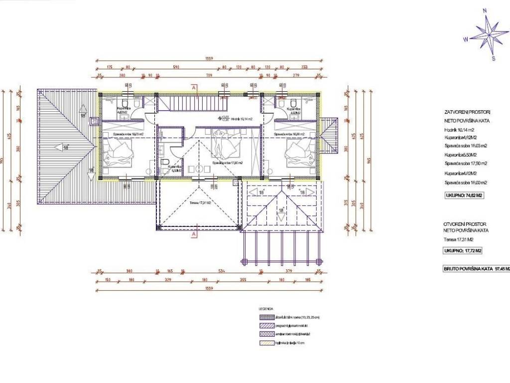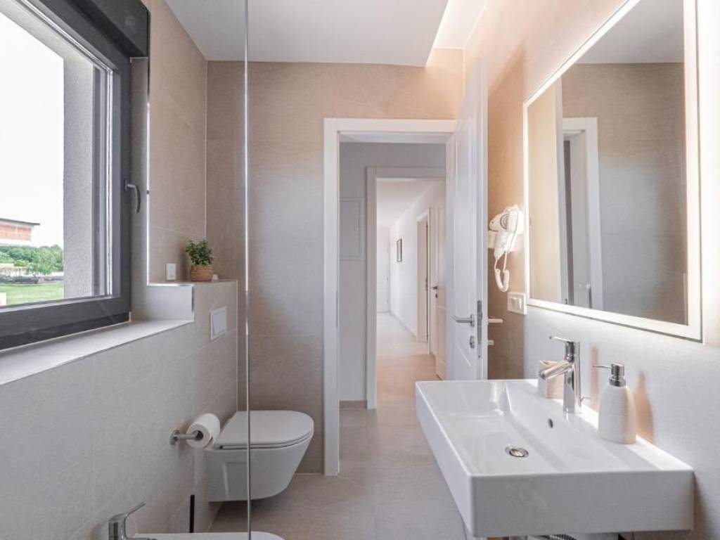 Luxury villa with pool, 2 km from the sea and Poreč.The villa covers the ground floor and the 1st floor.On the ground floor there is an entrance hall, a boiler room with a laundry room, a guest toilet, one bedroom with its own bathroom and its own exit to the yard, a large living room, a dining room and an open space concept kitchen with access to a covered terrace, where there is a summer kitchen with a fireplace. , spacious sunbathing area and swimming pool 11m x 4.5m. Next to the pool there is an outdoor shower, an outdoor toilet and another storage room.On the 1st floor, there are 3 bedrooms, each with its own bathroom, while the master bedroom has its own covered terrace with a view of unbuildable nature and the swimming pool.The villa has a 16KW heat pump, with the possibility of remote ignition, underfloor heating, and fan coils in all rooms.PVC joinery with three-layer argon glasses, mosquito nets and electric blinds on all windows and glass walls.The bedrooms have high-quality parquet, and the kitchen and furniture are custom-made.Each bathroom has radiators, a wall-mounted hair dryer, and mirrors with defogger.There is a safe in all bedrooms.The villa is fenced and has an electric gate, and has 3 parking spaces.The villa is located in a quiet location in Poreč, not far from all necessary facilities for life.
