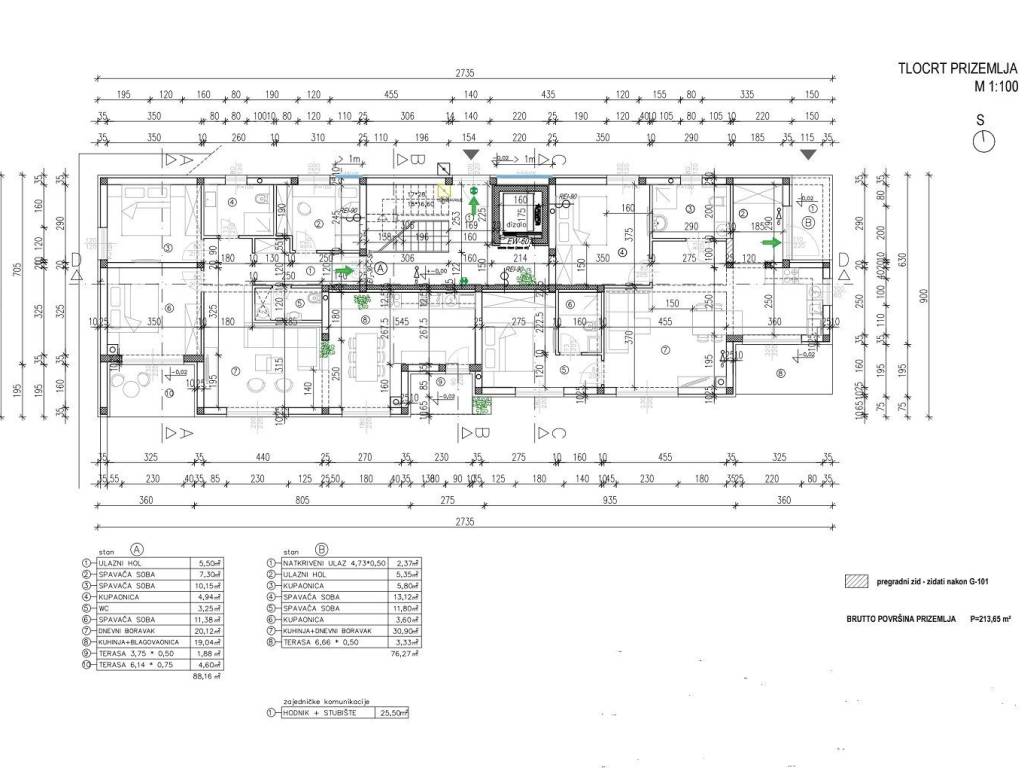 Apartment B on the ground floor of 76.27m2 with approx. 70m2 yard, consists of: covered entrance, hallway, 2 bathrooms, 2 bedrooms, living room, kitchen and dining room with access to the terrace.