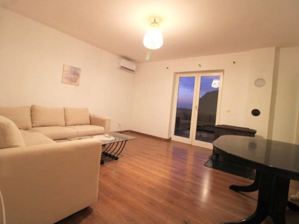 Apartment on the 2nd floor, 1.5 km from the sea.The apartment consists of an entrance hall, living room and dining room, kitchen, 2 bedrooms, bathroom and terrace with sea view.The apartment has 1 parking space.Behind the house is a yard with an open summer kitchen that the tenants can use together.All necessary facilities are located near the apartment, school, kindergarten, shops, post office, doctor, pharmacy.