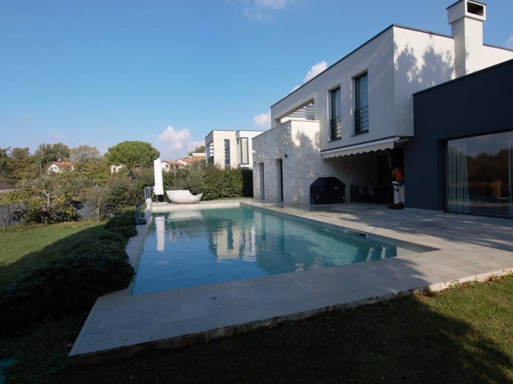 A luxury villa with a swimming pool in the suburbs of Poreč is for sale. The villa is characterized by a modern design and high-quality furniture, it has a well-kept, large and completely fenced garden with a covered terrace with a barbecue, a swimming pool of about 50 m with a beautifully decorated sunbathing area.