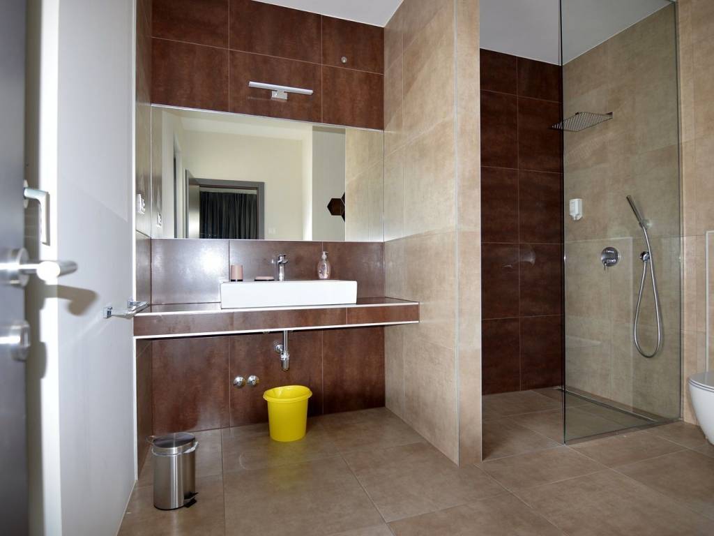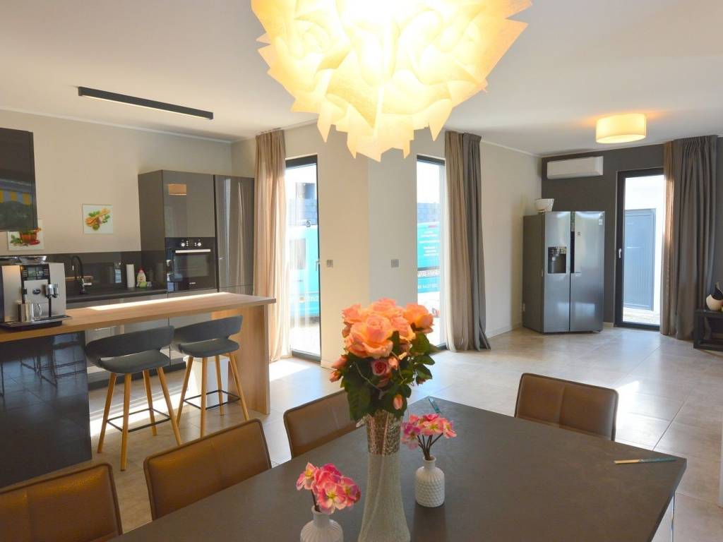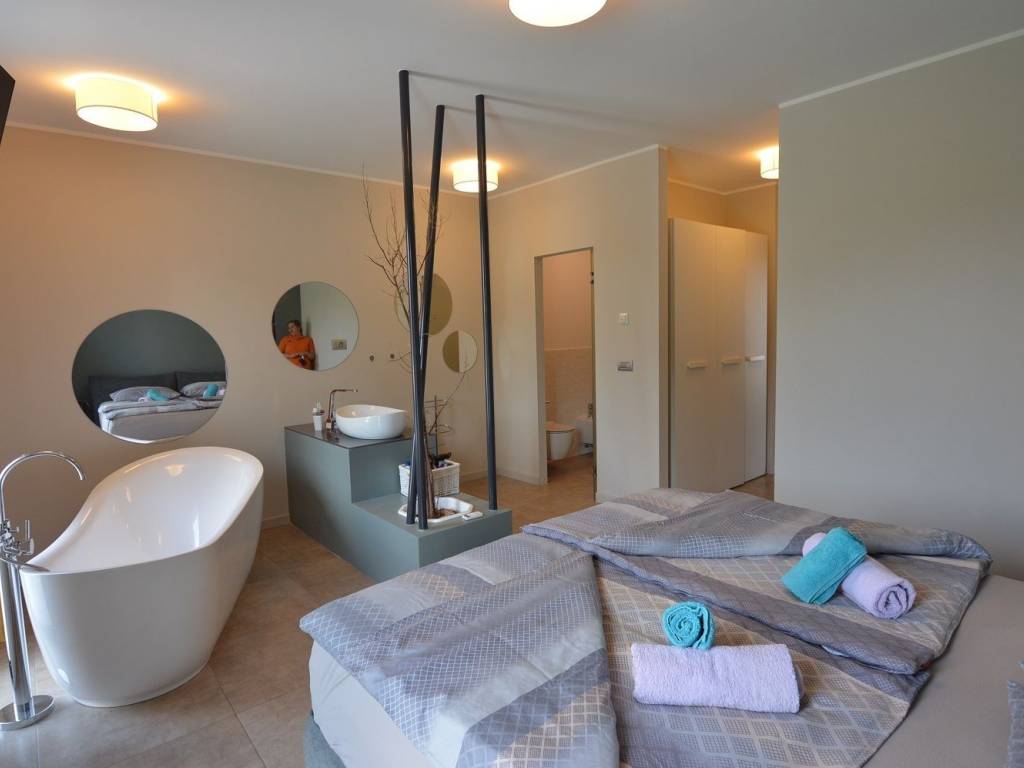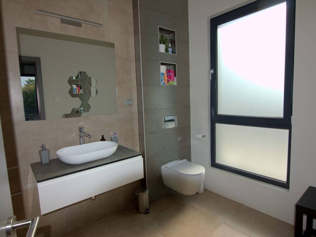 The villa is spread over two floors and is heated and cooled by a heat pump. On the ground floor there is an entrance hall, a kitchen with a dining room and a living room with an exit to the terrace, a toilet, a storage room, a boiler room and a double bedroom with a bathtub in the middle of the room and its own bathroom.On the first floor there are three bedrooms, each with access to the terrace and a bathroom.