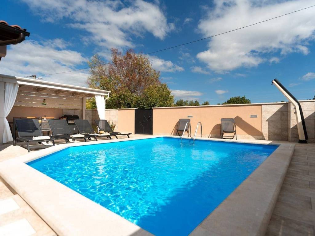 A family house for sale with a swimming pool, completely fenced, which provides privacy.In front of the house there is a summer kitchen. On the ground floor of the house there is an entrance hall, a spacious living room, a fully equipped kitchen, a living room, a bedroom and a bathroom. The remaining three bedrooms, a bathroom and a toilet are on the first floor. The bedrooms have access to a spacious terrace.