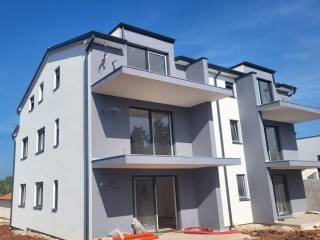 Newly built 1st floor apartment in the vicinity of Poreč The apartment is located on the 1st floor of a new building, in a quiet location near the city of Poreč It consists of: hallway, open space living room with kitchen and dining room exit to covered terrace, two bedrooms and bathroom. The apartment has underfloor heating and air conditioning. Very good location with good traffic connections.
