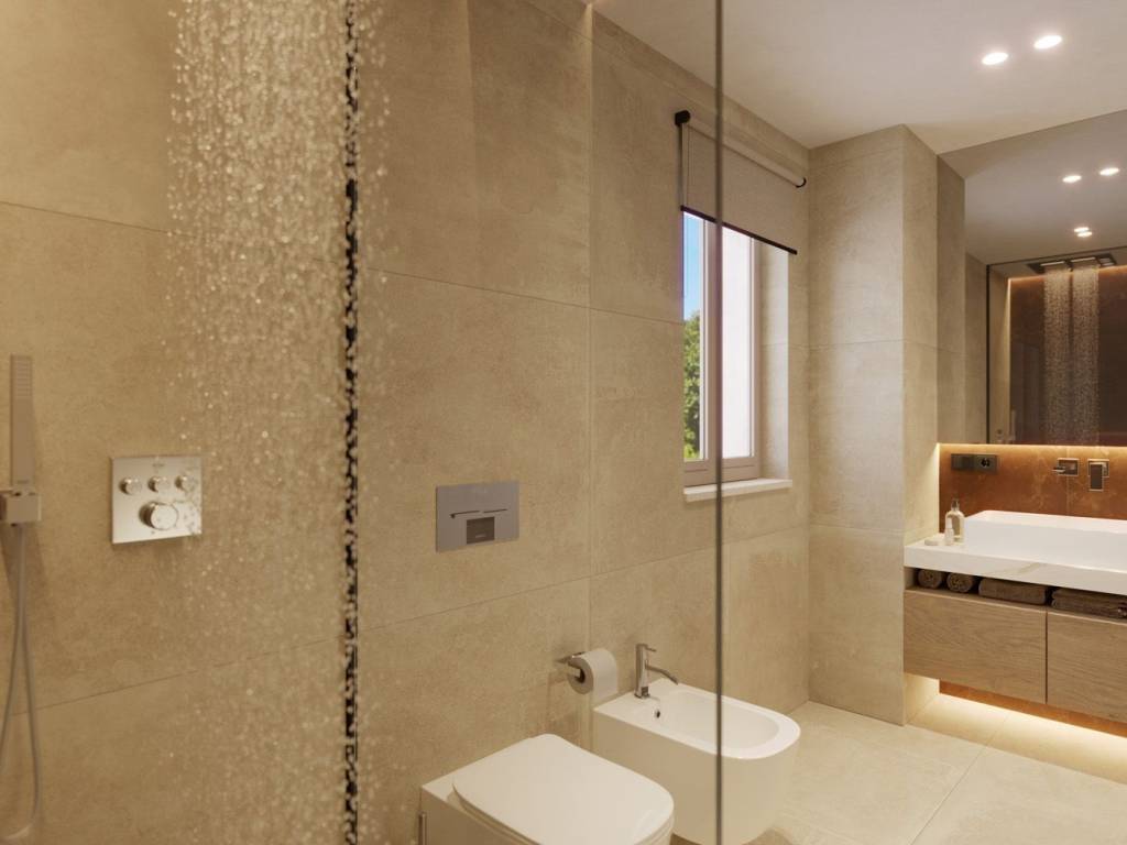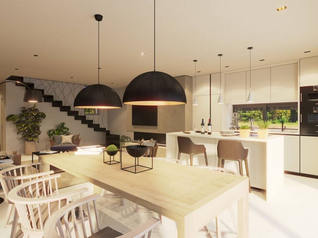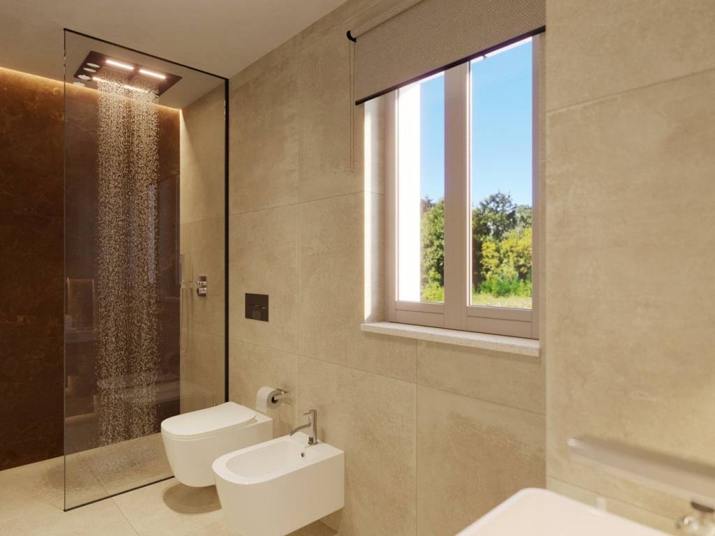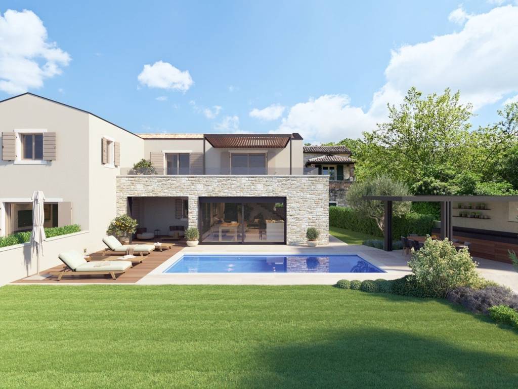 U okolici Tinjana gradi se dvojna vila sa bazenima i pogledom na more na parceli od 1290 m2.Prodaje se pola dvojne kuće ima 131 m2 i sastoji se od kuhinje sa blagovaonom i dnevnog boravka , 3 spavaće sobe svaka sa svojom kupaonom i ogromnom terasom na katu sa pogledom na more.U uređenom dvorištu previđen je bazen od 32 m2.