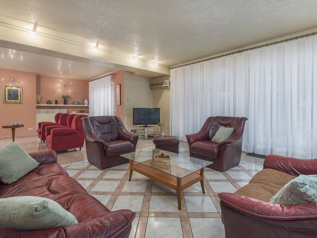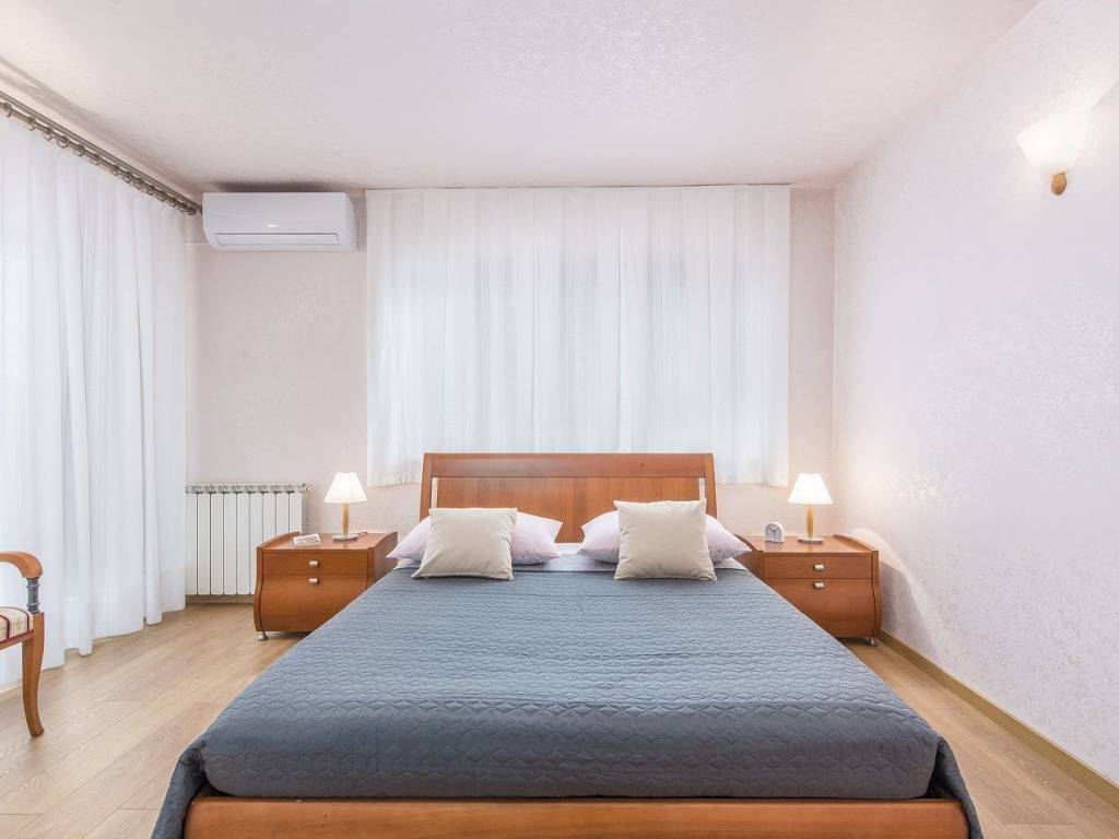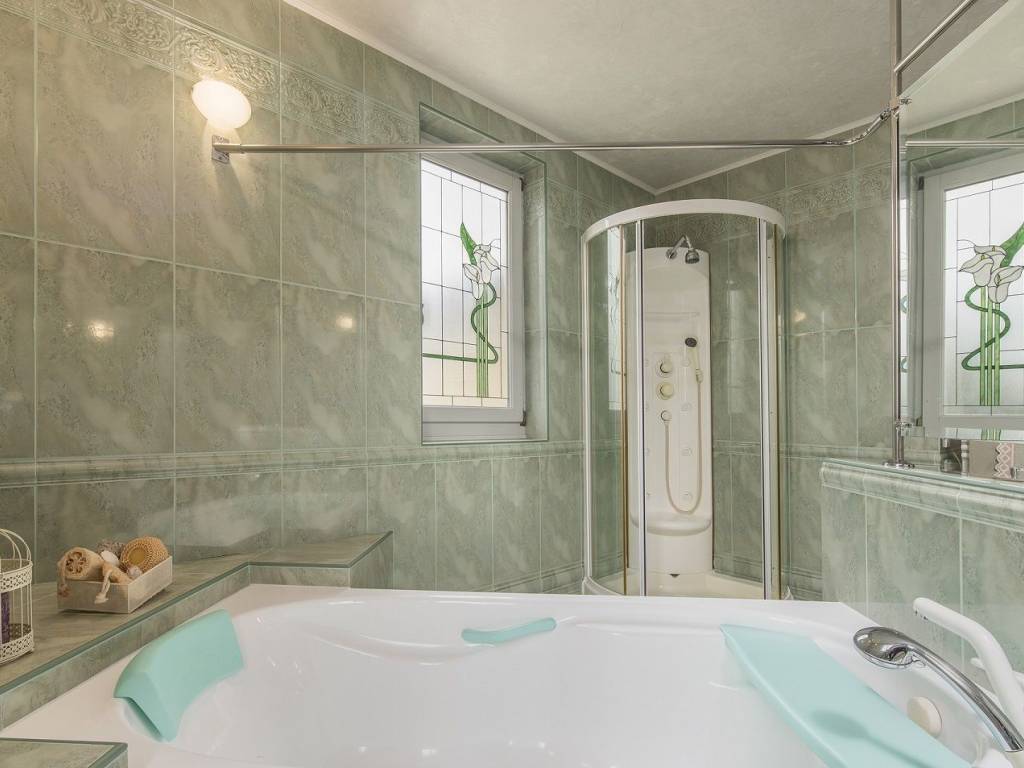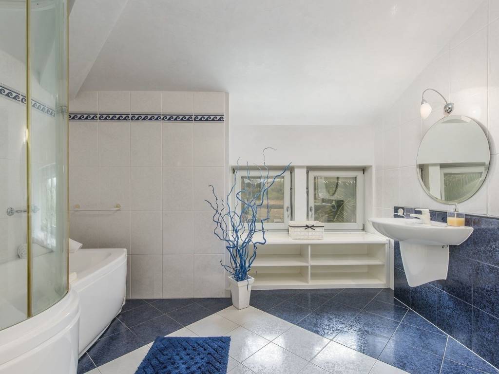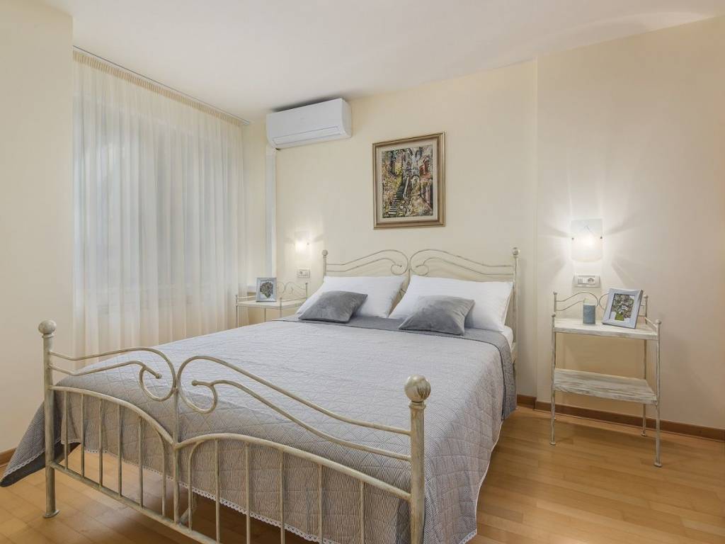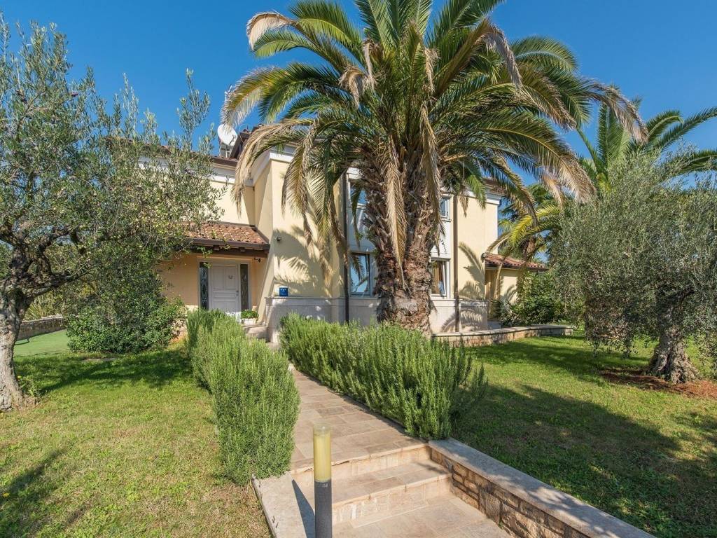 A beautiful villa in Poreč, located in a quiet village surrounded by nature, 1 km from the sea. Surface area 420m2, spread over three floors. Something special and valuable can be found in the basement of the house, a traditional Istrian tavern with a mini stone bar, a large dining room with a fireplace, an equipped kitchen, a toilet and a glass wine cellar. The tavern is connected to the rest of the house, so the stairs lead to the ground floor of the house. It consists of two bedrooms and two bathrooms with showers, a spacious living room with a fireplace that has access to the winter garden and the yard of the house, below is a dining room and a kitchen with storage. On the first floor, there are three more bedrooms, one master with access to the balcony, which has its own luxurious bathroom with bathtub and shower and walk-in closet. In the hallway of the first floor there is an additional living room that can be used as a work space, mini gym, etc. with access to the balcony. At the entrance to the second bathroom, there is a room fully equipped with built-in wardrobes, which creates additional space for everything you need. All rooms and bedrooms are air-conditioned, and heated by oil radiators. The storage room is located in the basement of the house. The house is sold fully furnished and equipped. The ground floor leads to a large covered terrace, a yard of approx. 1250m2, a sundeck and a beautiful pool of 77m2.You will be delighted by this beautifully decorated green yard filled with plants and palm trees that give a special atmosphere. In the yard there is also a grill area with a fireplace, a bread oven and a large stone table covered with vines, an outdoor storage room.