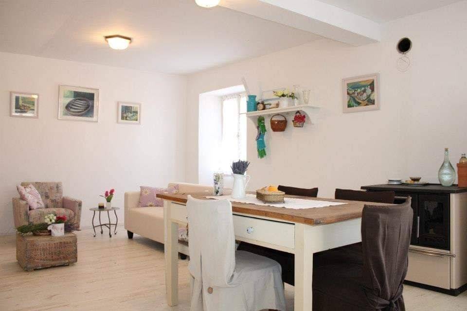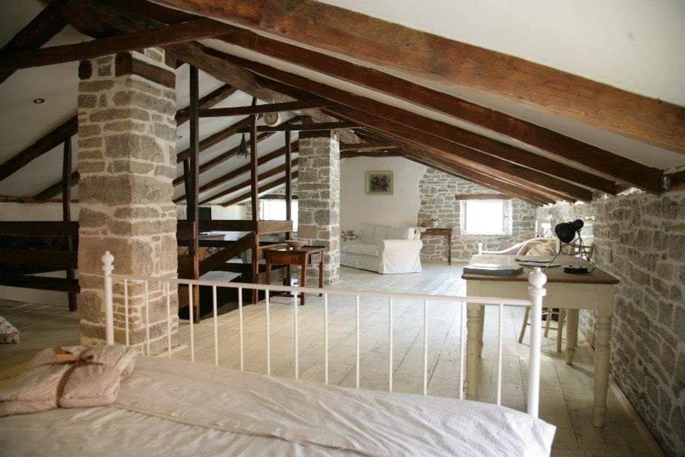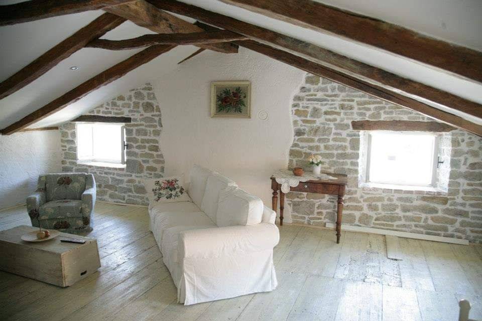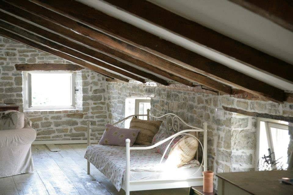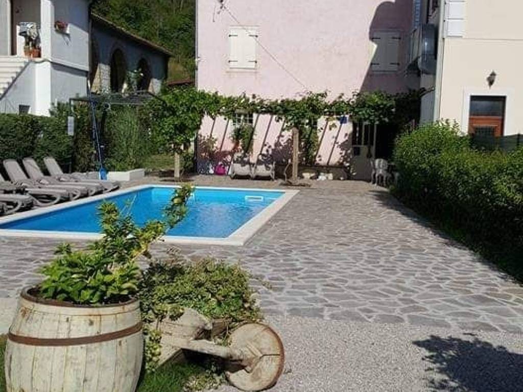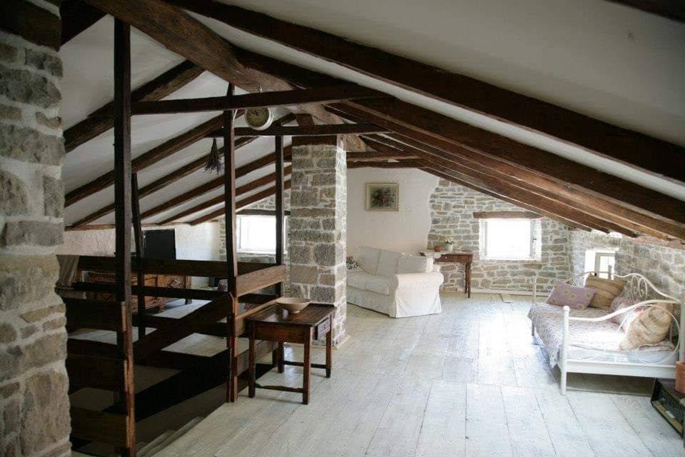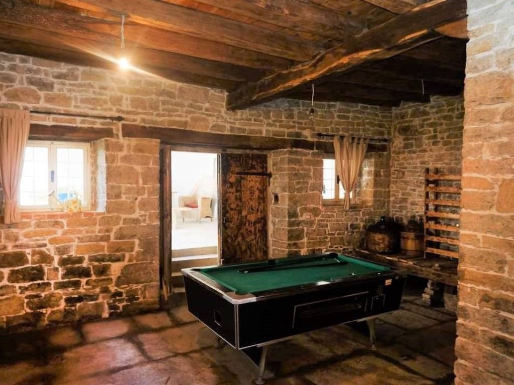 In the vicinity of Motovun in a small and quiet place for sale are two houses located in the heart of Istria. The villa has three floors, a private garden with swimming pool and a barbecue in Istrian style. The main stone house has been completely renovated.On the ground floor is a large lounge that has been converted from an old wine cellar and now has a pool table, a kitchen with a large social table and a toilet.On the first floor there is a kitchen with living room, two bedrooms and a bathroom.In the attic there is a large open gallery that can be used as a living room and bedroom and another bathroom.Next to the head of the house there is an old barn consisting of 2 floors of approximately 120 m2 and which needs to be completely renovated.In front of the house is a neat yard with a swimming pool completely surrounded by hedges and offers satisfactory privacy.The house is furnished with renovated wooden furniture, beams and stone floors have been preserved, which gives this house a special flair.