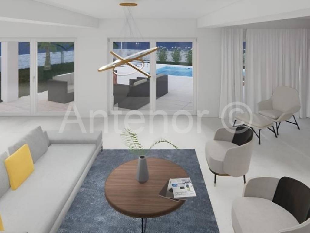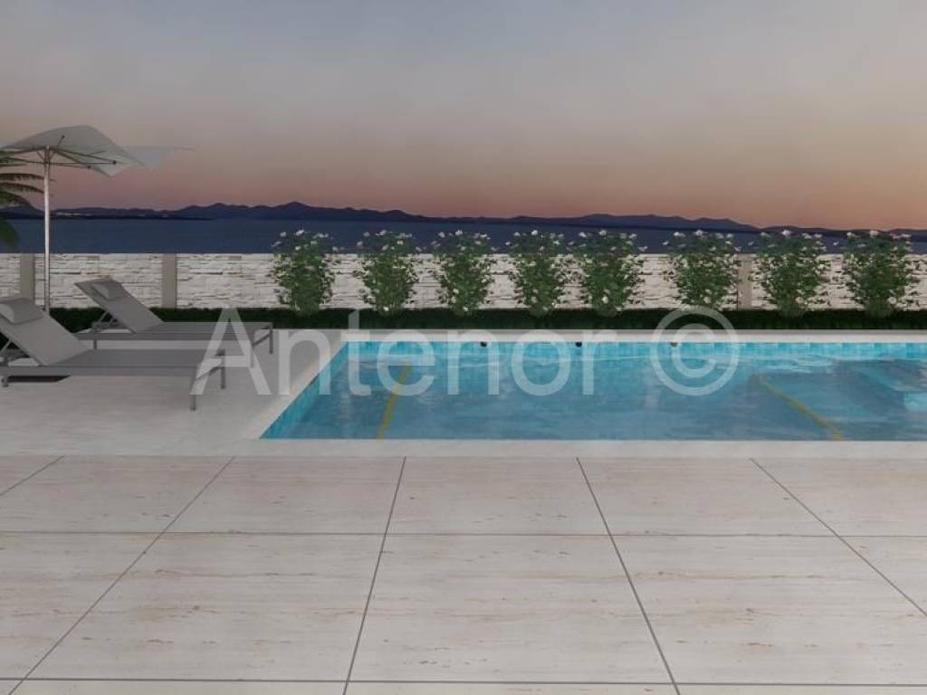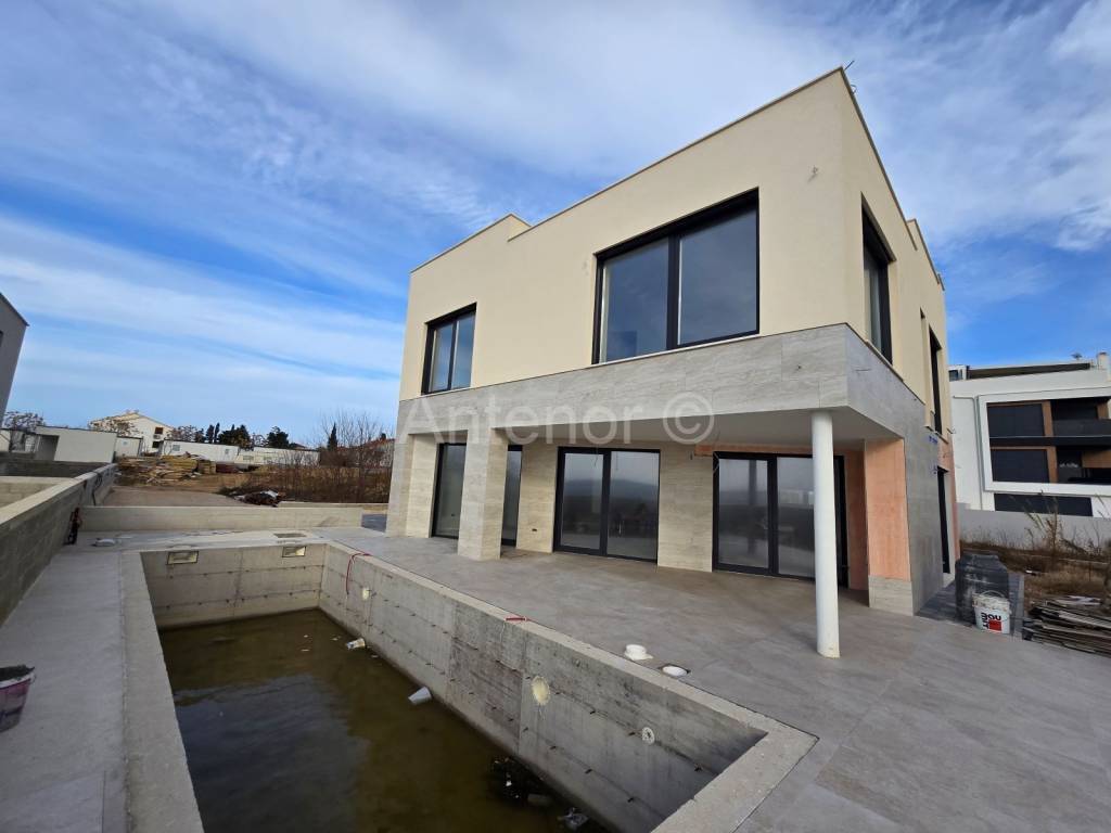 PRIVLAKA - prodaje se moderna villa s bazenom2. red do mora sa pogledom prvog reda do mora. Vila se gradi na zemljištu od 480 m2. Vila se sastoji od prizemlja, prvog kata i krovne terase s prekrasnim panoramskim pogledom.