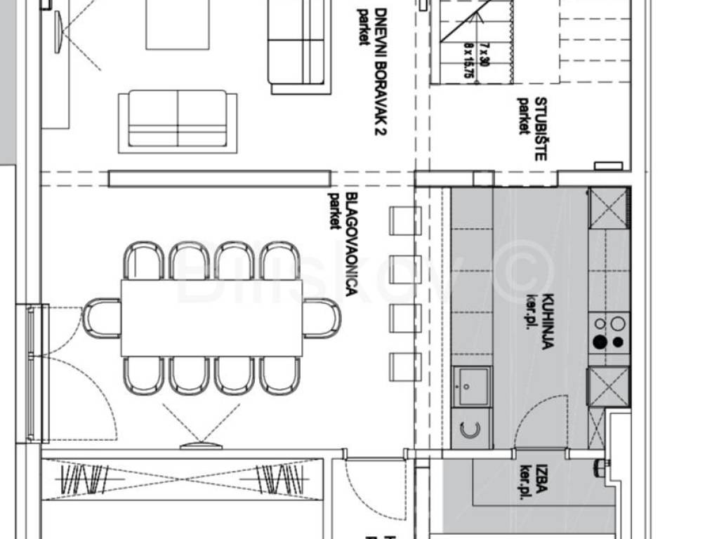 Beautiful two-story, six-room apartment of 240 m2, on the high ground floor and first floor of a new building (2021).