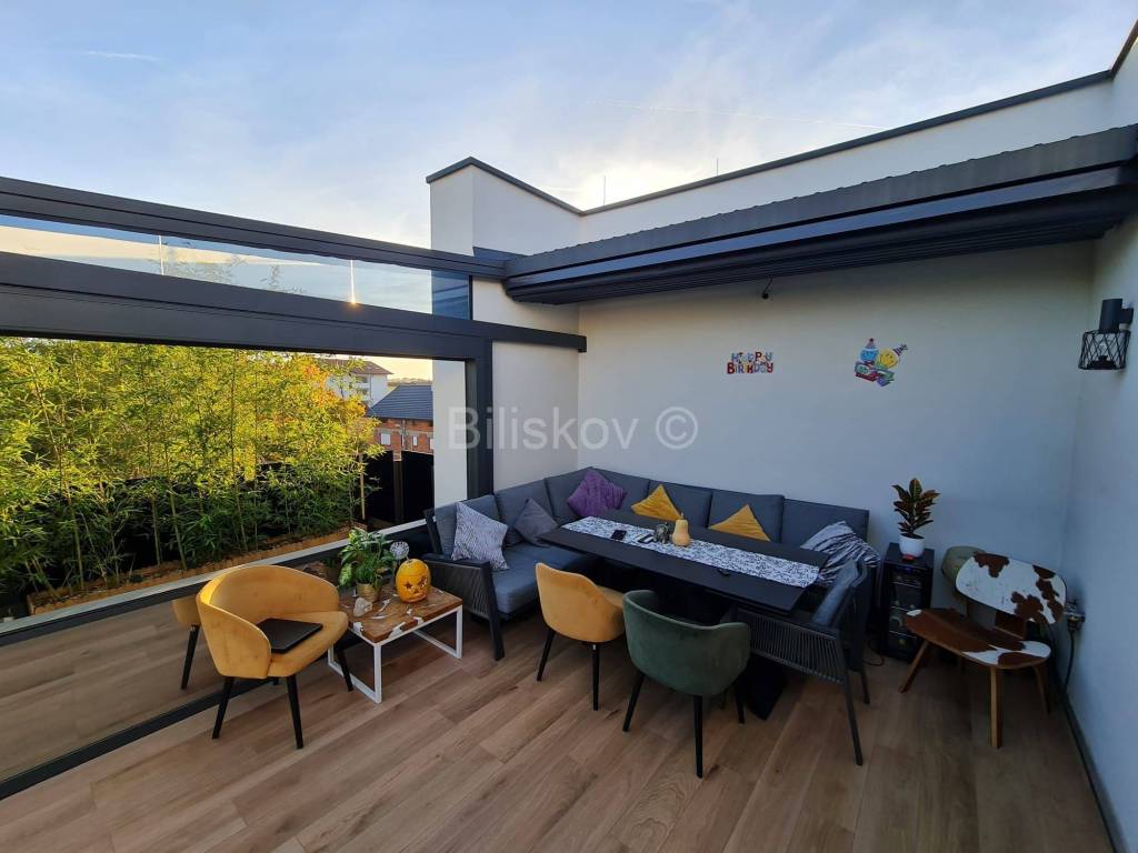 The mentioned room is equipped with high-quality parquet floors, while the glass walls and roof are connected to electricity. motor, and if necessary, they can be easily retracted and create an open space (terrace).