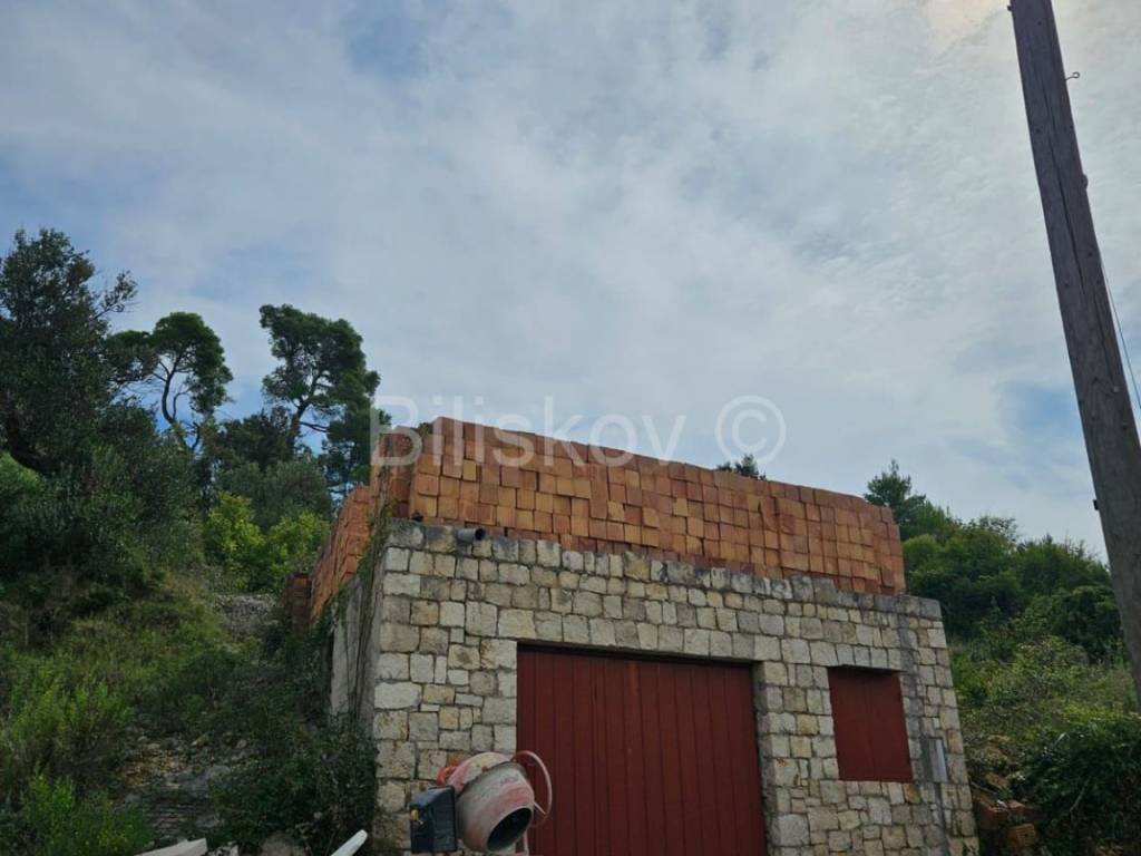 Brač, Bobovišća, land with a total area of 4356 m2, of which 397m2 is in the construction part with a legalized object of 47m2. The building is connected to electricity and water and has a house number. It is located in a quiet location, 150m away from the sea and the center. The building is not finished, and it is possible to request a permit for upgrading because it is in the construction part.